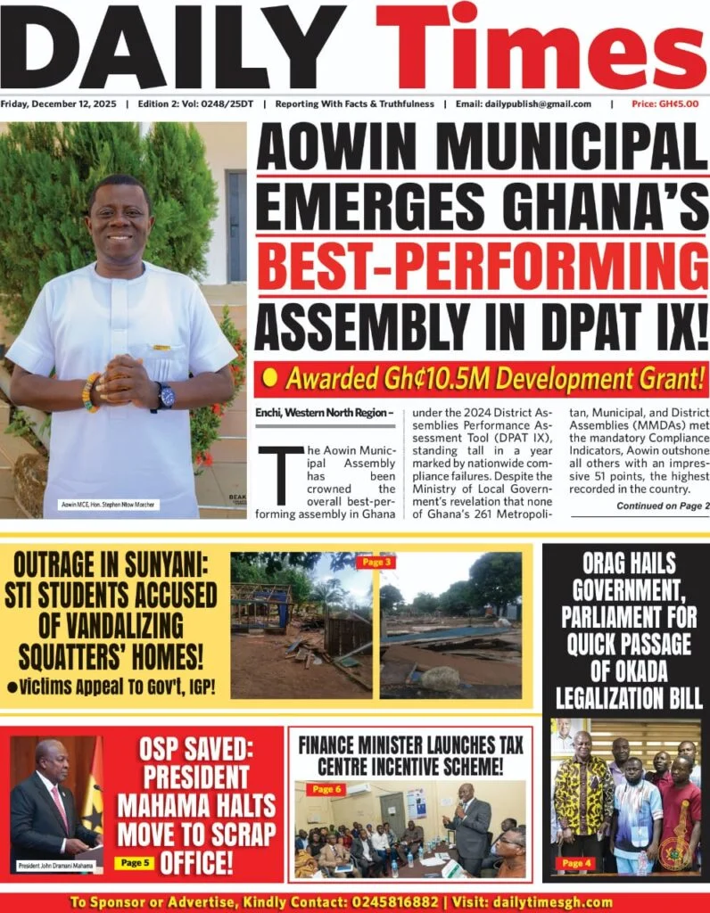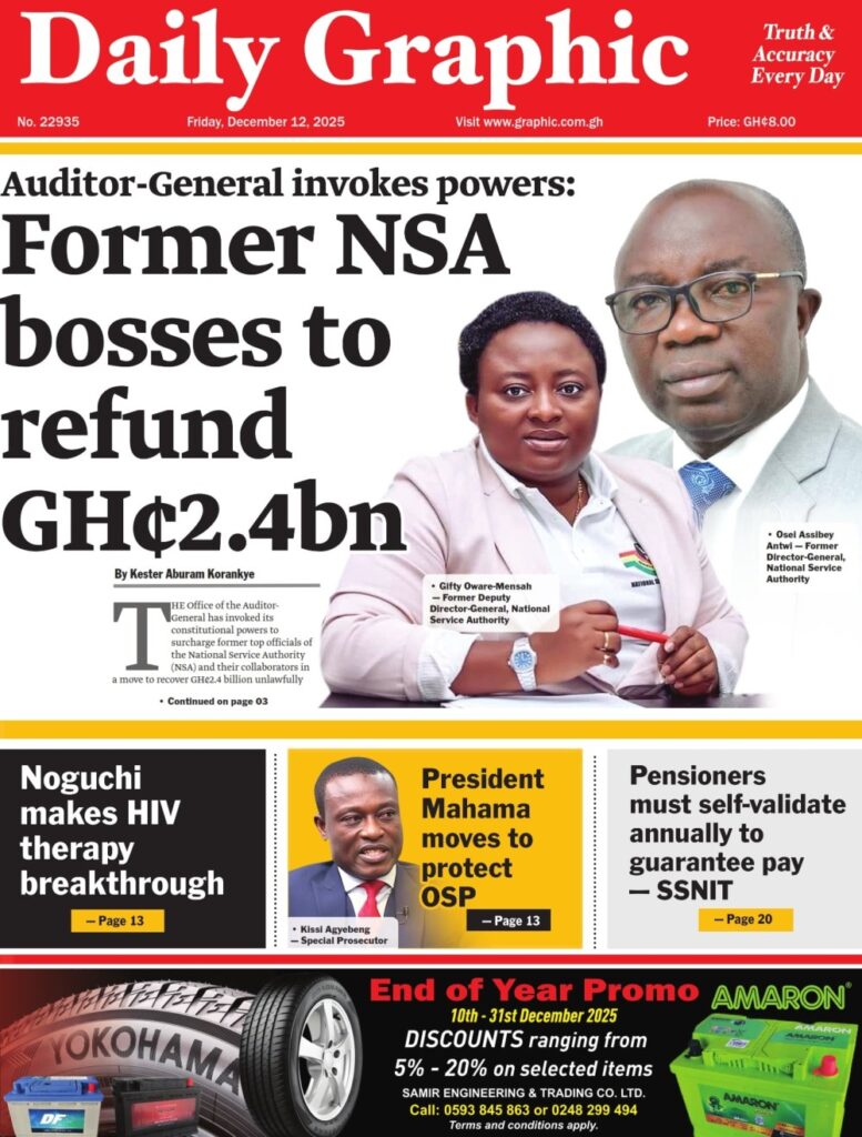 Home/General News/Newspaper Front Page: Friday, December 12, 2025 General News Newspaper Front Page: Friday, December 12, 2025 Eddie Kesse11 minutes ago 0 Less than a minute Daily Graphic TagsFront Pages Newspaper Eddie Kesse11 minutes ago 0 Less than a minute Share Facebook X WhatsApp Telegram