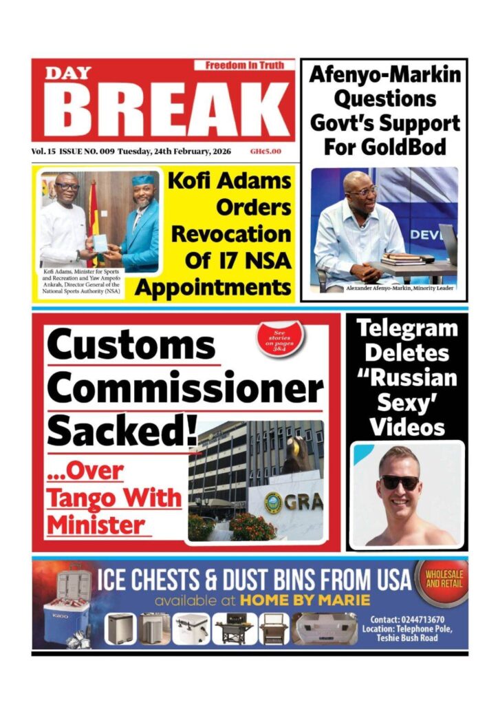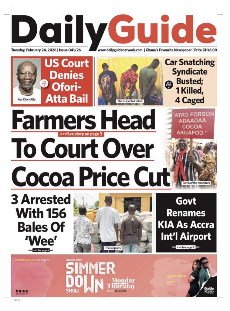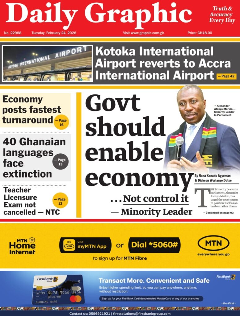 Home/General News/Newspaper Front Page Tuesday, February 24, 2026 General News Newspaper Front Page Tuesday, February 24, 2026 Eddie Kesse2 hours ago 50 Less than a minute Daily Graphic TagsFront Pages Newspaper Eddie Kesse2 hours ago 50 Less than a minute Share Facebook X WhatsApp Telegram