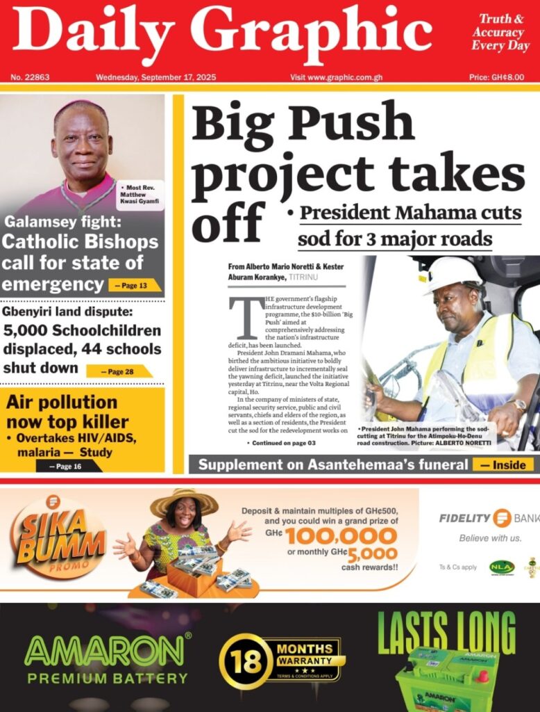 Home/General News/Newspaper Front Page: Wednesday, September 17, 2025 General News Newspaper Front Page: Wednesday, September 17, 2025 Eddie KesseSeptember 17, 2025 168 Less than a minute Daily Guide TagsFront Pages Newspaper Eddie KesseSeptember 17, 2025 168 Less than a minute Share Facebook X WhatsApp Telegram