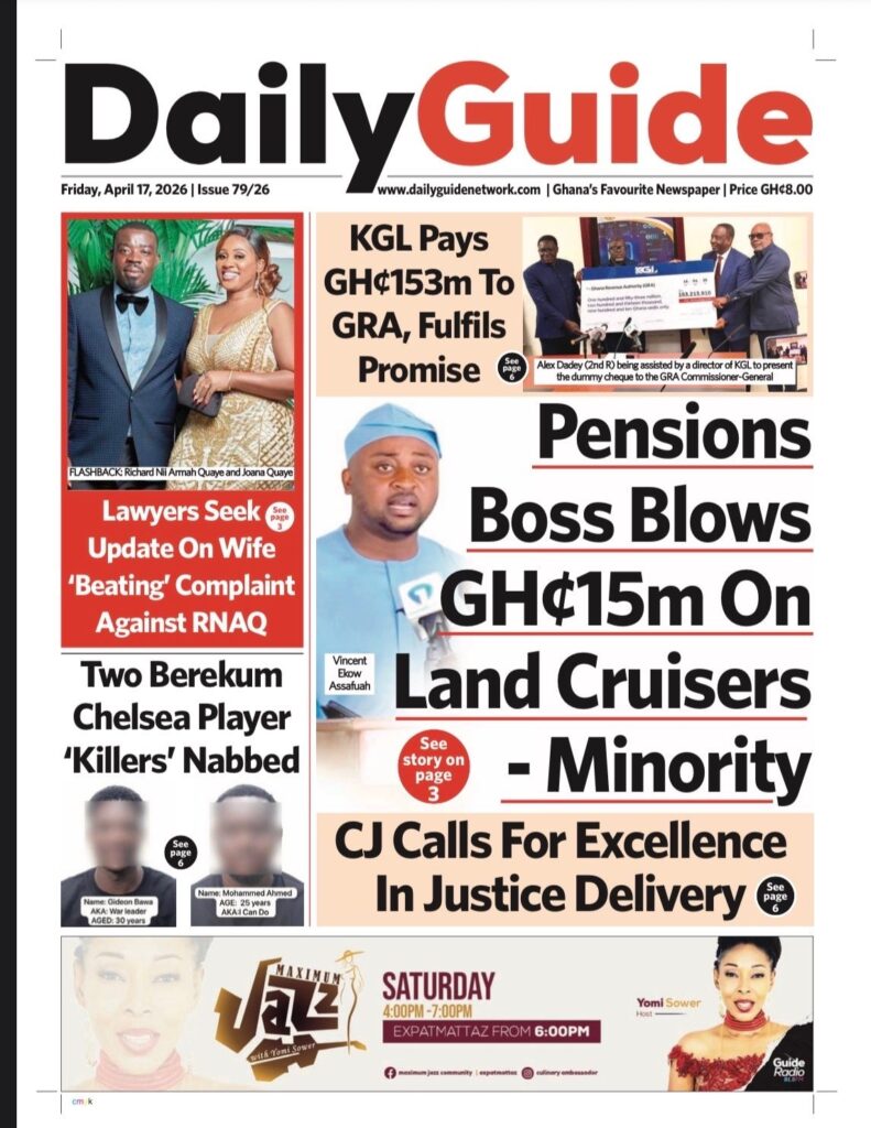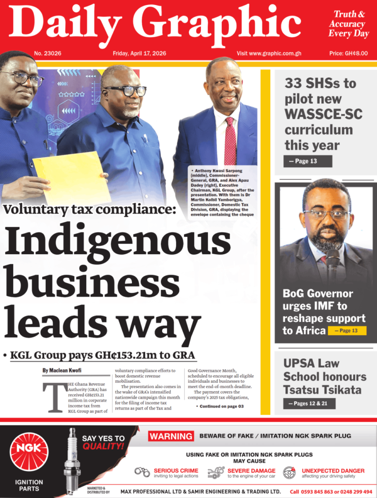 Home/General News/Newspaper Front Pages: Friday, April 17, 2026 General NewsUncategorized Newspaper Front Pages: Friday, April 17, 2026 Eddie Kesse 2 hours ago 23 Less than a minute Daily Graphic TagsFront Pages Newspaper
