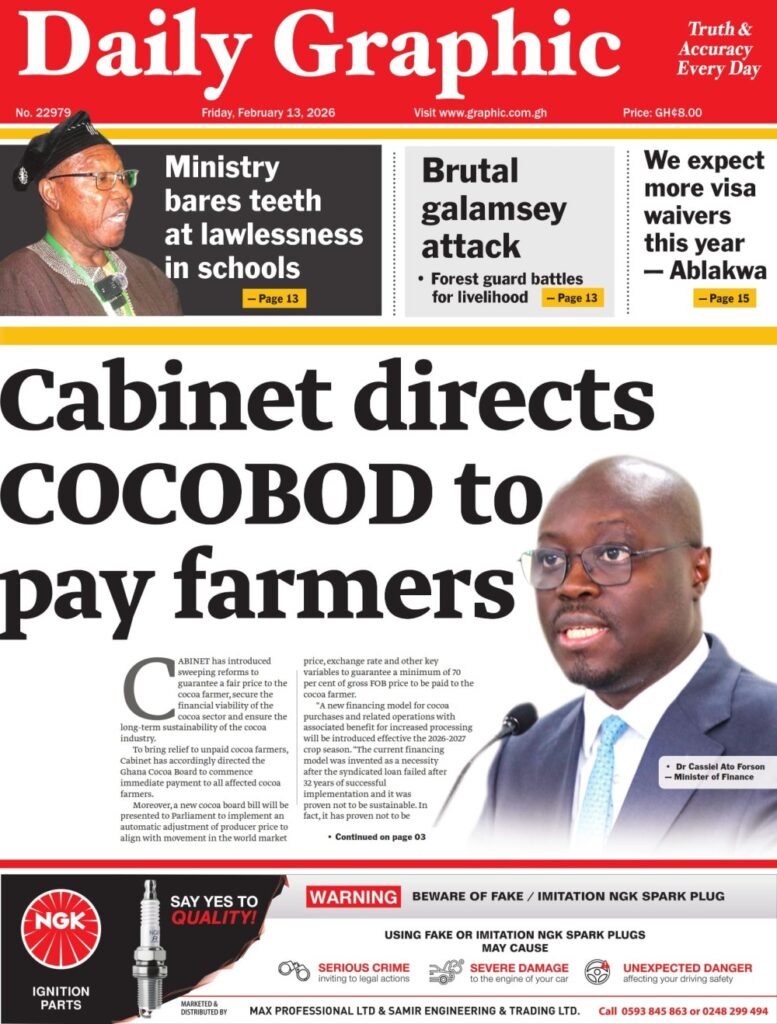 Home/General News/Newspaper Front Pages: Friday, February 13, 2026 General News Newspaper Front Pages: Friday, February 13, 2026 Eddie Kesse2 hours ago 51 Less than a minute Daily Graphic TagsFront Pages Newspaper Eddie Kesse2 hours ago 51 Less than a minute Share Facebook X WhatsApp Telegram