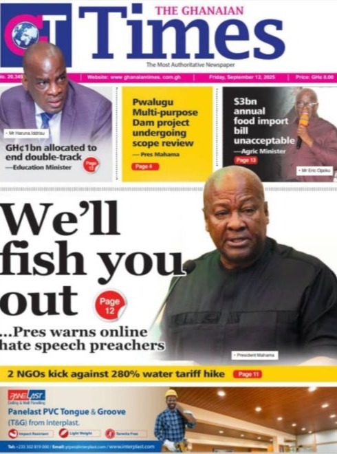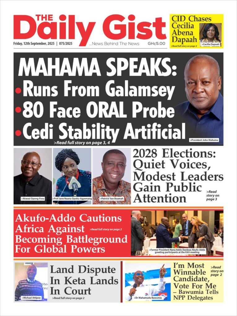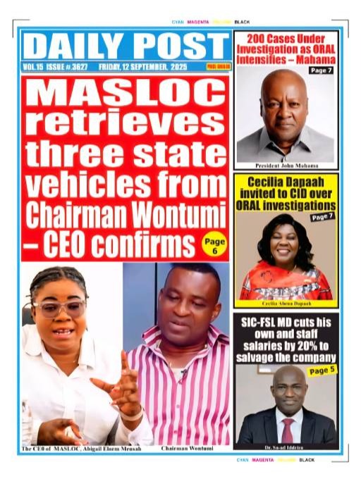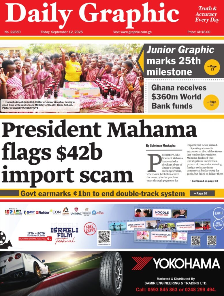 Home/General News/Newspaper Front Pages: Friday, September 12, 2025 General News Newspaper Front Pages: Friday, September 12, 2025 Eddie KesseSeptember 12, 2025 79 Less than a minute Daily Graphic The Ghanaian Times Chronicle Daily Guide TagsFront Pages Newspaper Eddie KesseSeptember 12, 2025 79 Less than a minute Share Facebook X WhatsApp Telegram