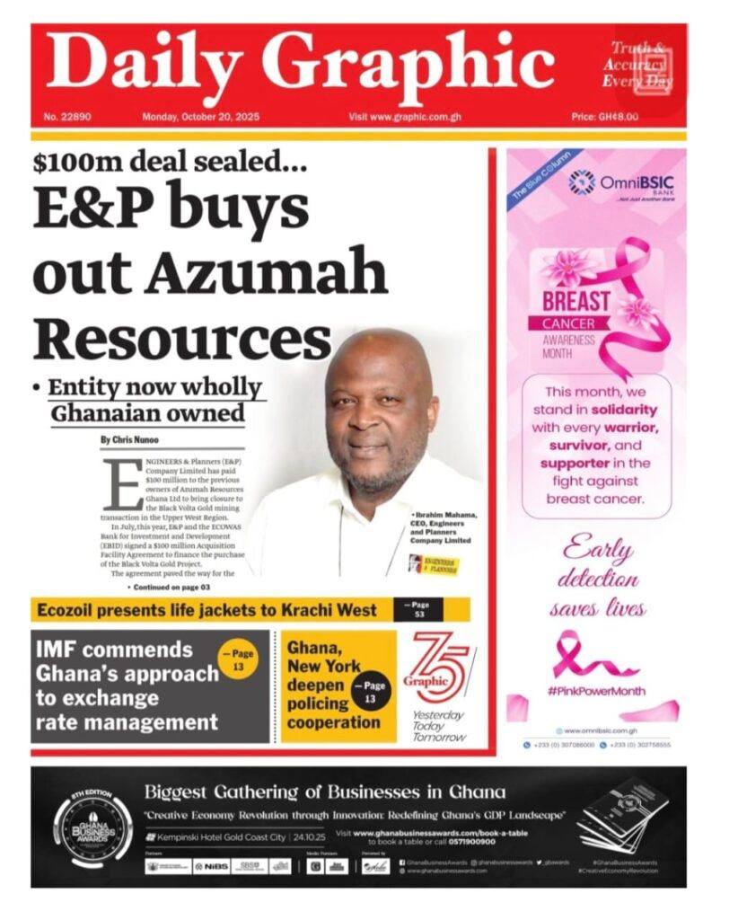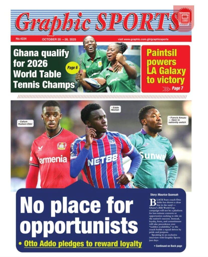 Home/General News/Newspaper Front Pages – Monday, 20th October, 2025 General News Newspaper Front Pages – Monday, 20th October, 2025 Eddie KesseOctober 20, 2025 110 Less than a minute Daily Graphic TagsFront Pages Newspaper Eddie KesseOctober 20, 2025 110 Less than a minute Share Facebook X WhatsApp Telegram
