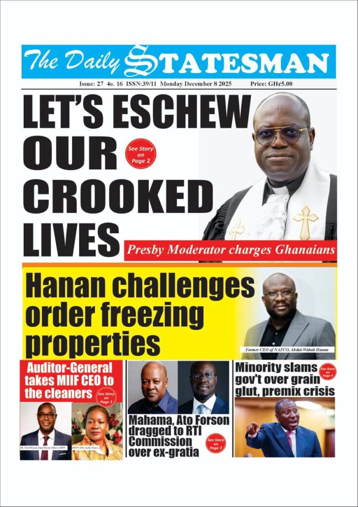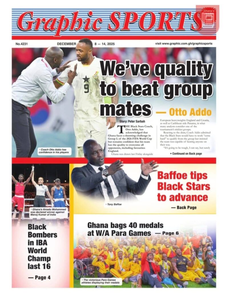 Home/General News/Newspaper Front Pages: Monday, December 08, 2025 General News Newspaper Front Pages: Monday, December 08, 2025 Eddie Kesse10 minutes ago 0 Less than a minute Daily Graphic TagsFront Pages Newspaper Eddie Kesse10 minutes ago 0 Less than a minute Share Facebook X WhatsApp Telegram