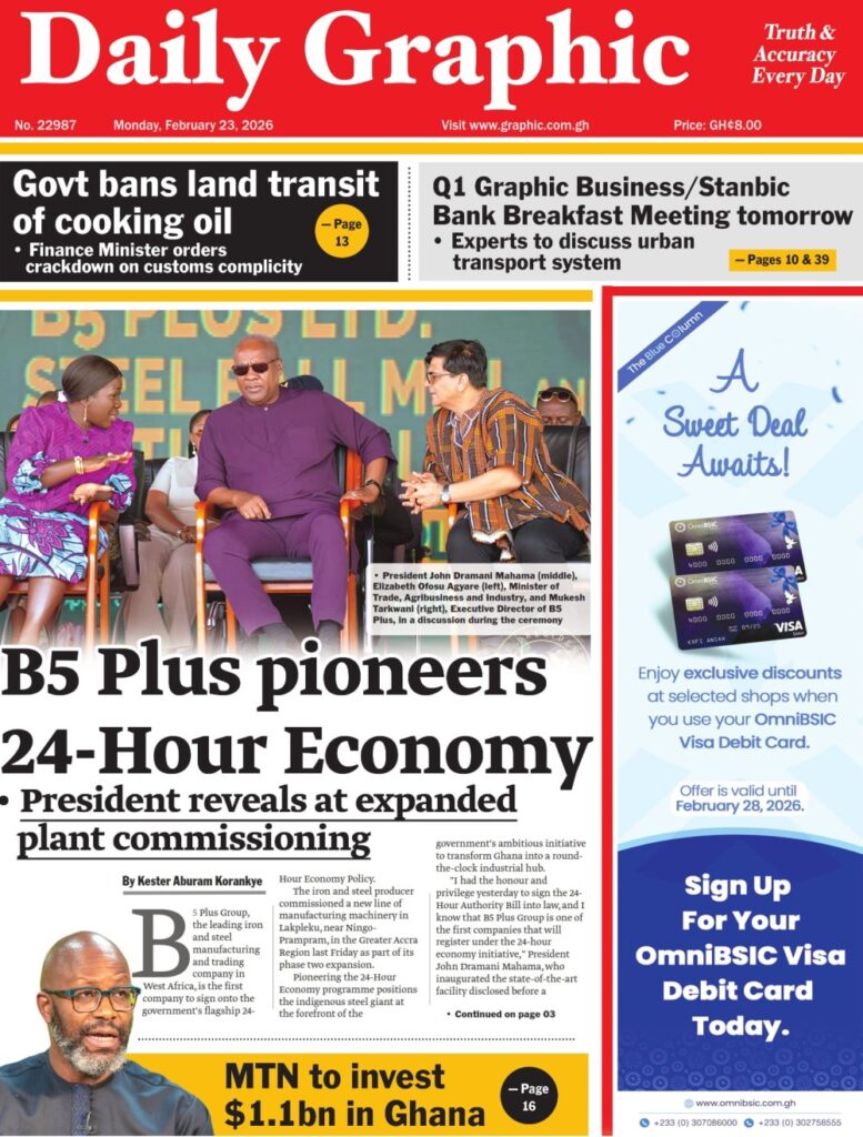Home/General News/Newspaper Front Pages: Monday, February 23, 2026 General News Newspaper Front Pages: Monday, February 23, 2026 Eddie Kesse17 hours ago 100 Less than a minute Daily Graphic TagsFront Pages Newspaper Eddie Kesse17 hours ago 100 Less than a minute Share Facebook X WhatsApp Telegram