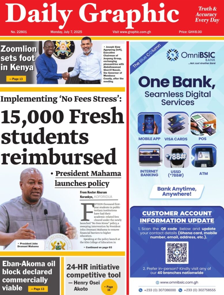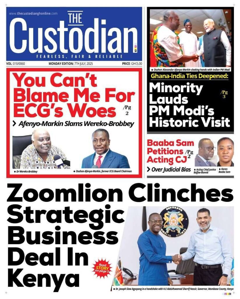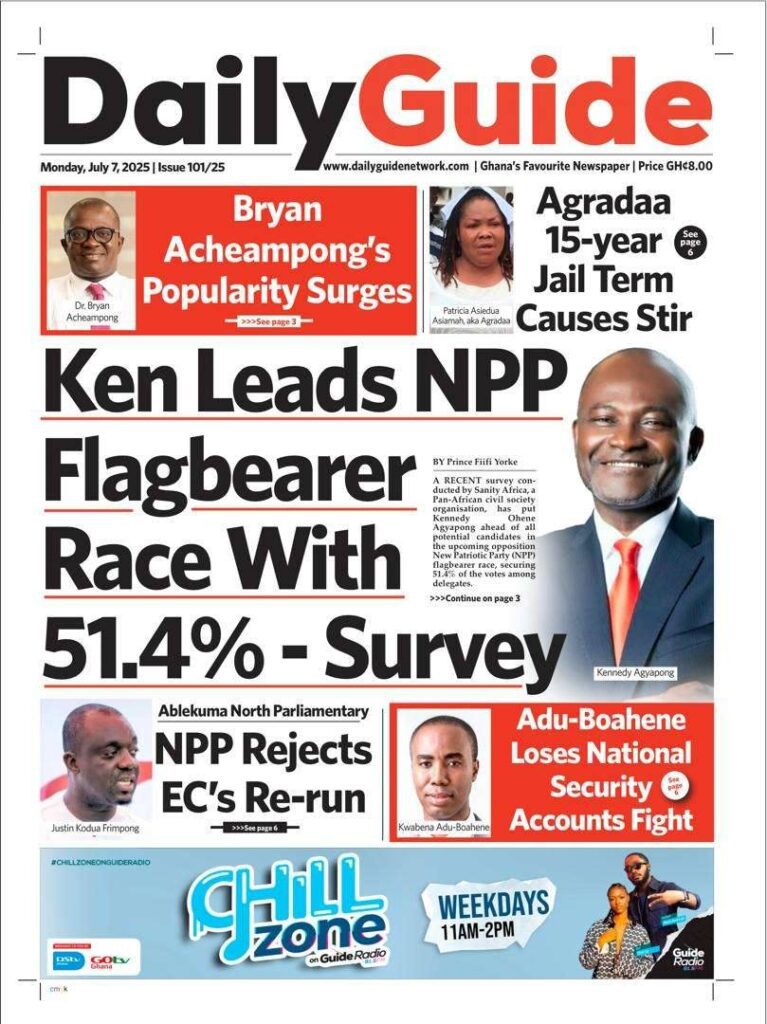 Home/General News/Newspaper Front Pages: Monday, July 07, 2025 General News Newspaper Front Pages: Monday, July 07, 2025 Eddie KesseJuly 7, 2025 67 Less than a minute Daily Graphic The Chronicle DAily Guide Custodian TagsFront Pages Newspaper Eddie KesseJuly 7, 2025 67 Less than a minute Share Facebook X WhatsApp Telegram