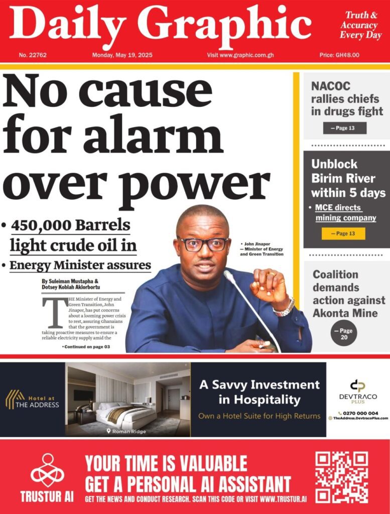 Home/General News/Newspaper Front Pages: Monday, May 19, 2025 General News Newspaper Front Pages: Monday, May 19, 2025 Eddie KesseMay 19, 2025 137 Less than a minute TagsFront Pages Newspaper Eddie KesseMay 19, 2025 137 Less than a minute Share Facebook X WhatsApp Telegram