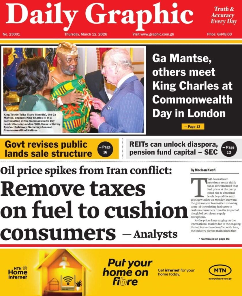 Home/General News/Newspaper Front Pages: Thursday 12th March 2026 General News Newspaper Front Pages: Thursday 12th March 2026 Eddie Kesse2 hours ago 37 Less than a minute Daily Graphic TagsFront Pages Newspaper Eddie Kesse2 hours ago 37 Less than a minute Share Facebook X WhatsApp Telegram
