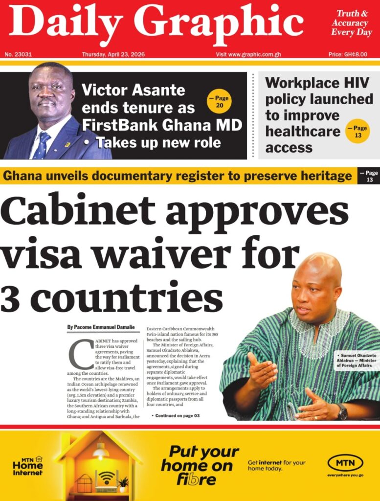 Home/General News/Newspaper Front Pages: Thursday, April 23, 2026 General News Newspaper Front Pages: Thursday, April 23, 2026 Eddie Kesse 2 hours ago 63 Less than a minute Daily Graphic TagsFront Pages Newspaper