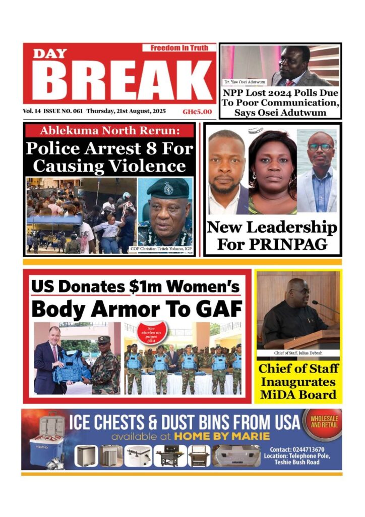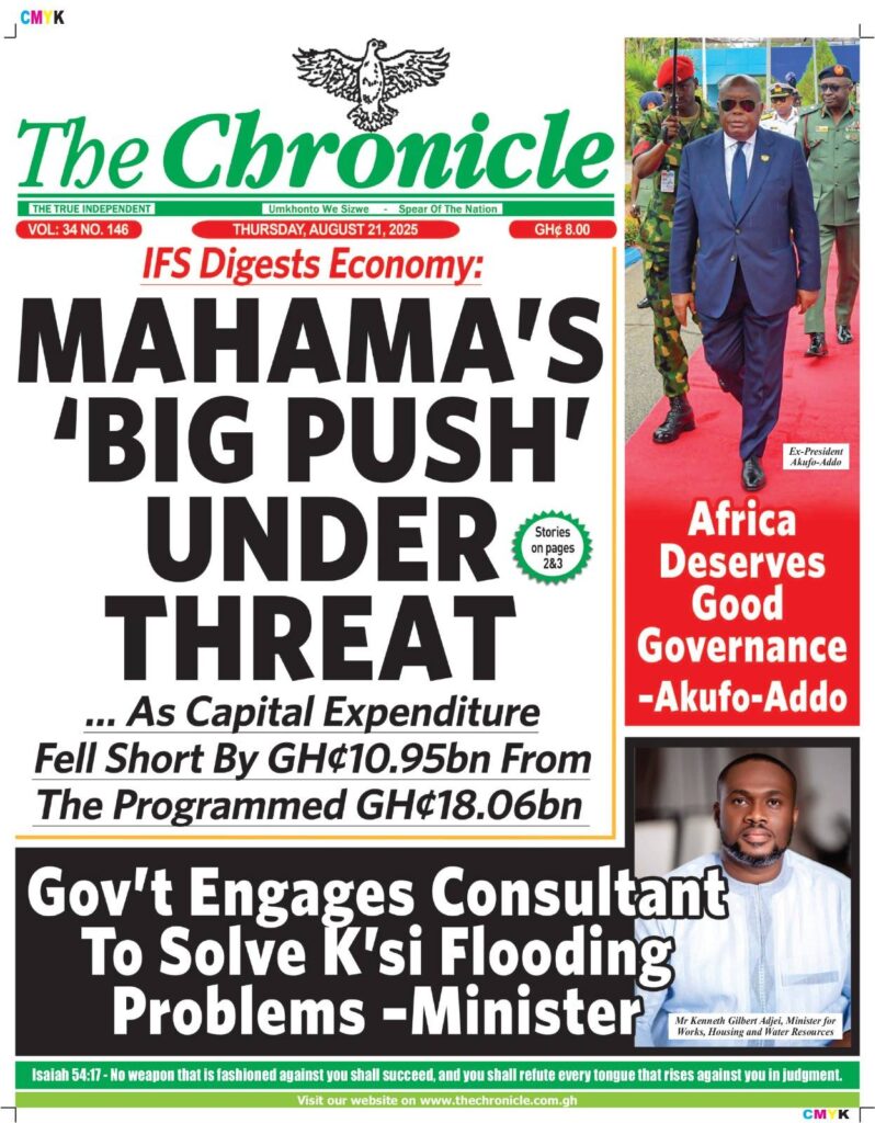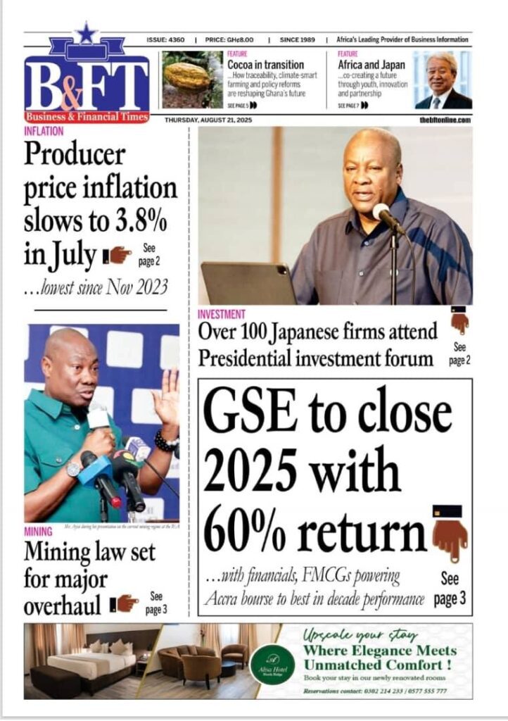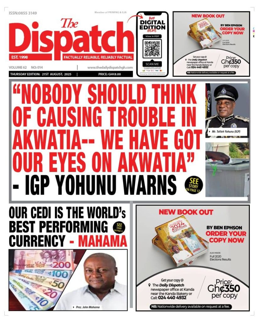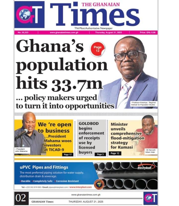 Home/General News/Newspaper Front Pages: Thursday, August 21, 2025 General News Newspaper Front Pages: Thursday, August 21, 2025 Eddie KesseAugust 21, 2025 127 Less than a minute Daily Graphic Ghanaian Times Daily Guide The Chronicle Dispatch TagsFront Pages Newspaper Eddie KesseAugust 21, 2025 127 Less than a minute Share Facebook X WhatsApp Telegram