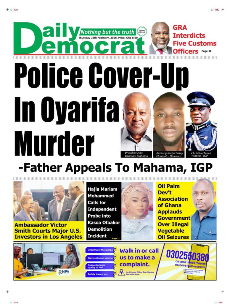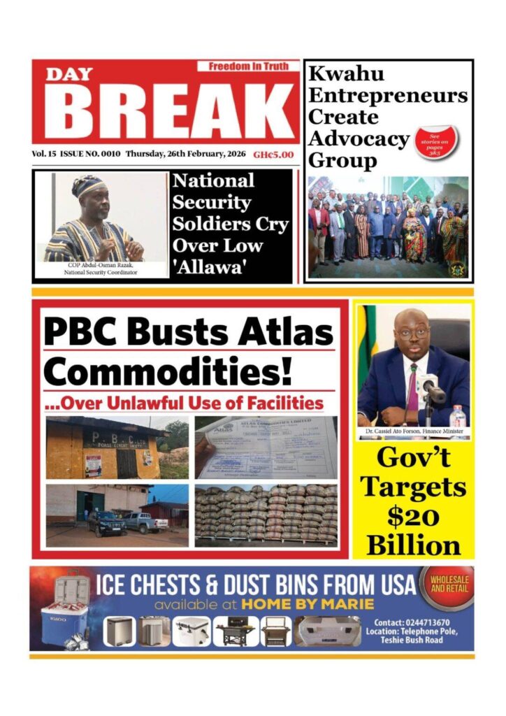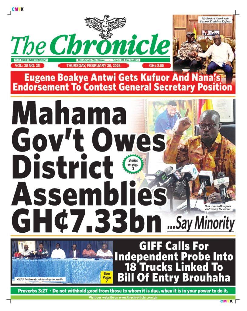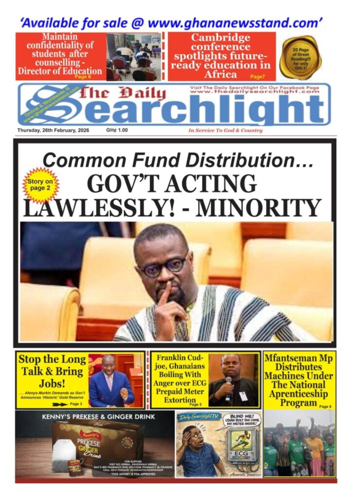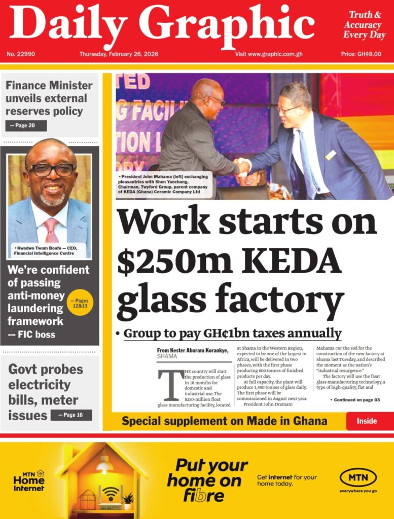 Home/General News/Newspaper Front Pages: Thursday, February 26, 2026 General News Newspaper Front Pages: Thursday, February 26, 2026 Eddie Kesse17 hours ago 72 Less than a minute Daily Graphic TagsFront Pages Newspaper Eddie Kesse17 hours ago 72 Less than a minute Share Facebook X WhatsApp Telegram