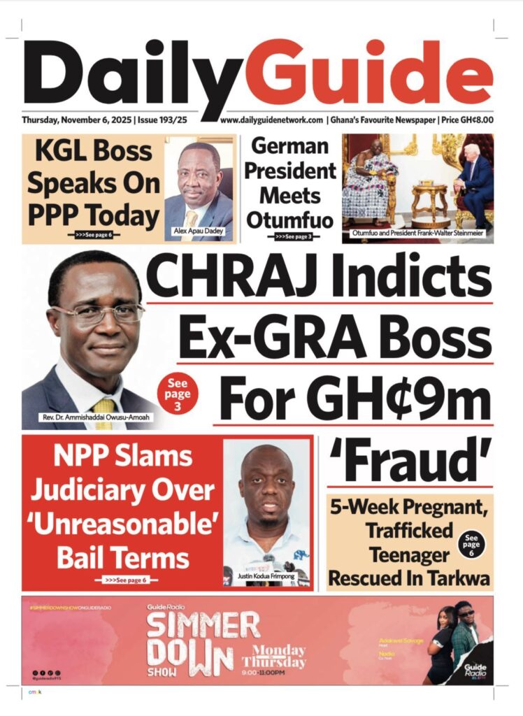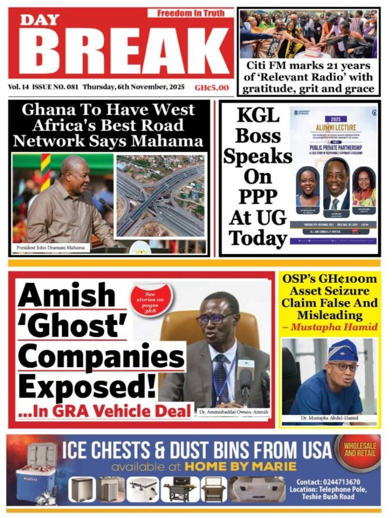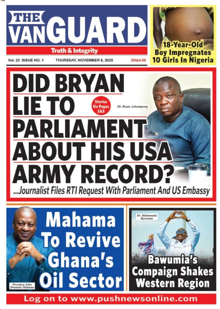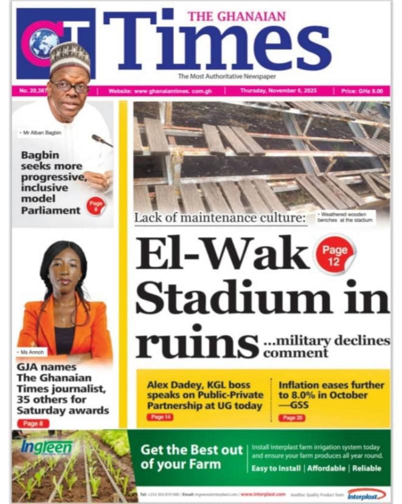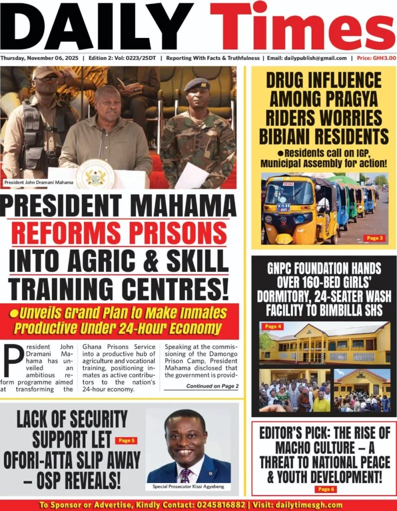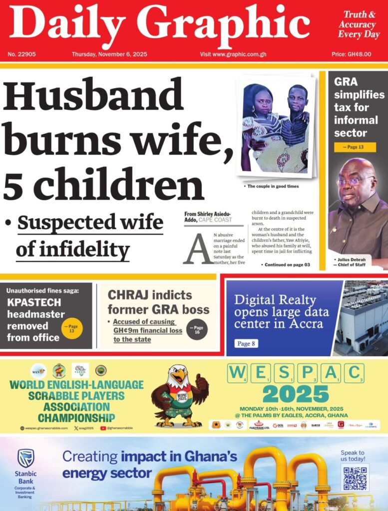 Home/General News/Newspaper Front Pages: Thursday, November 06, 2025 General News Newspaper Front Pages: Thursday, November 06, 2025 Eddie Kesse4 weeks ago 245 Less than a minute Daily Graphic TagsFront Pages Newspaper Eddie Kesse4 weeks ago 245 Less than a minute Share Facebook X WhatsApp Telegram