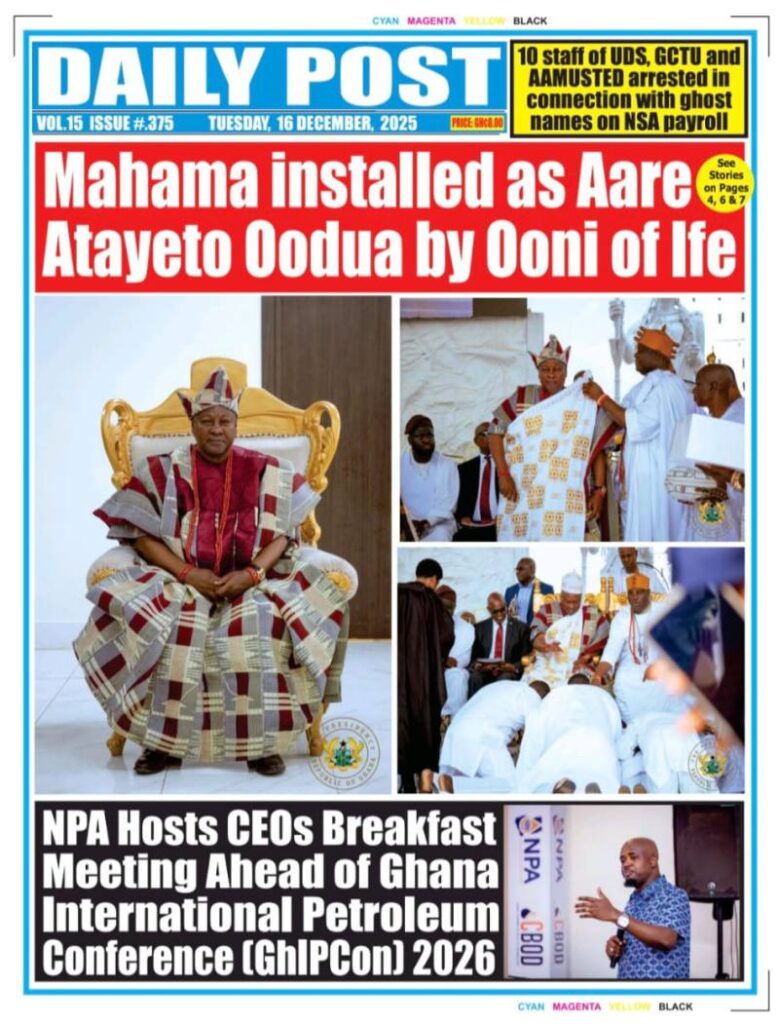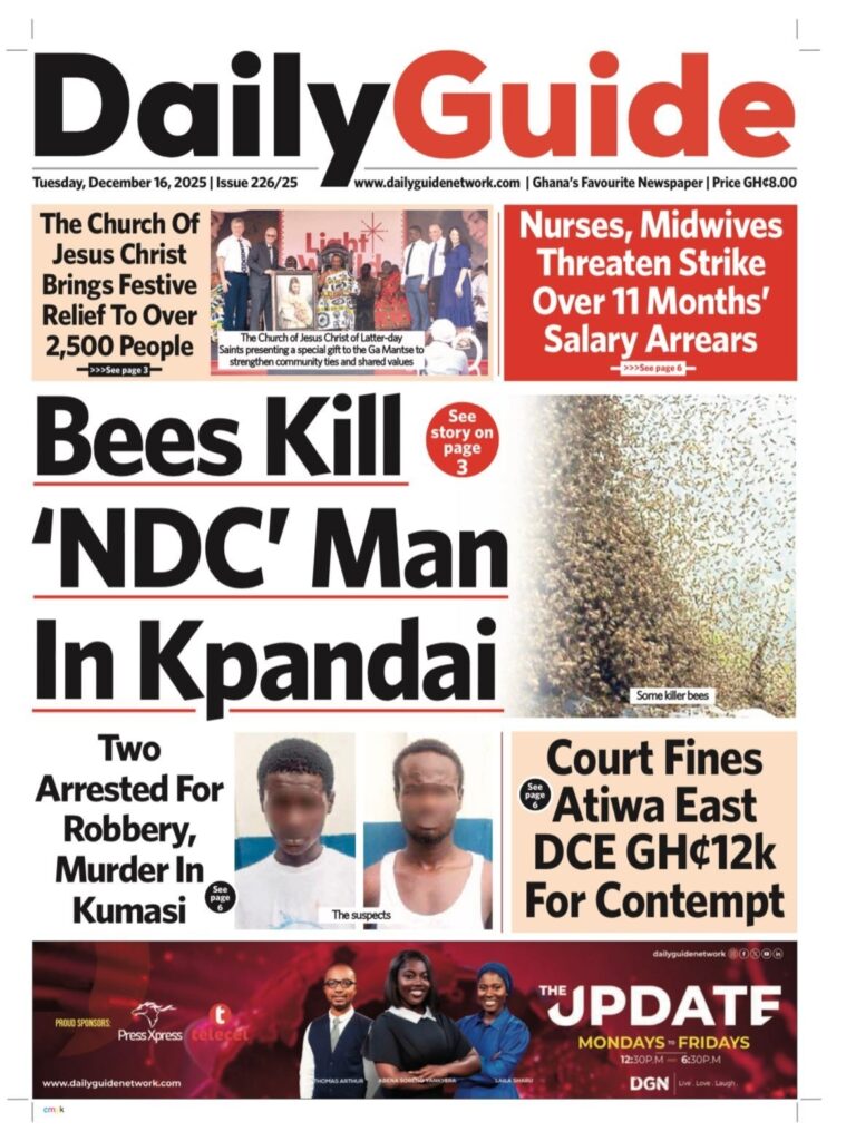 Home/General News/Newspaper Front Pages: Tuesday, December 16, 2025 General News Newspaper Front Pages: Tuesday, December 16, 2025 Eddie KesseDecember 16, 2025 183 Less than a minute Daily Graphic TagsFront Pages Newspaper Eddie KesseDecember 16, 2025 183 Less than a minute Share Facebook X WhatsApp Telegram