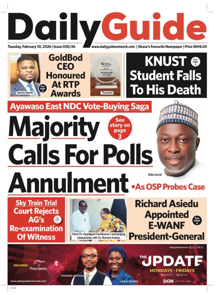 Home/General News/Newspaper Front Pages: Tuesday, February 10, 2026 General News Newspaper Front Pages: Tuesday, February 10, 2026 Eddie Kesse16 hours ago 74 Less than a minute Daily Graphic TagsFront Pages Newspaper Eddie Kesse16 hours ago 74 Less than a minute Share Facebook X WhatsApp Telegram