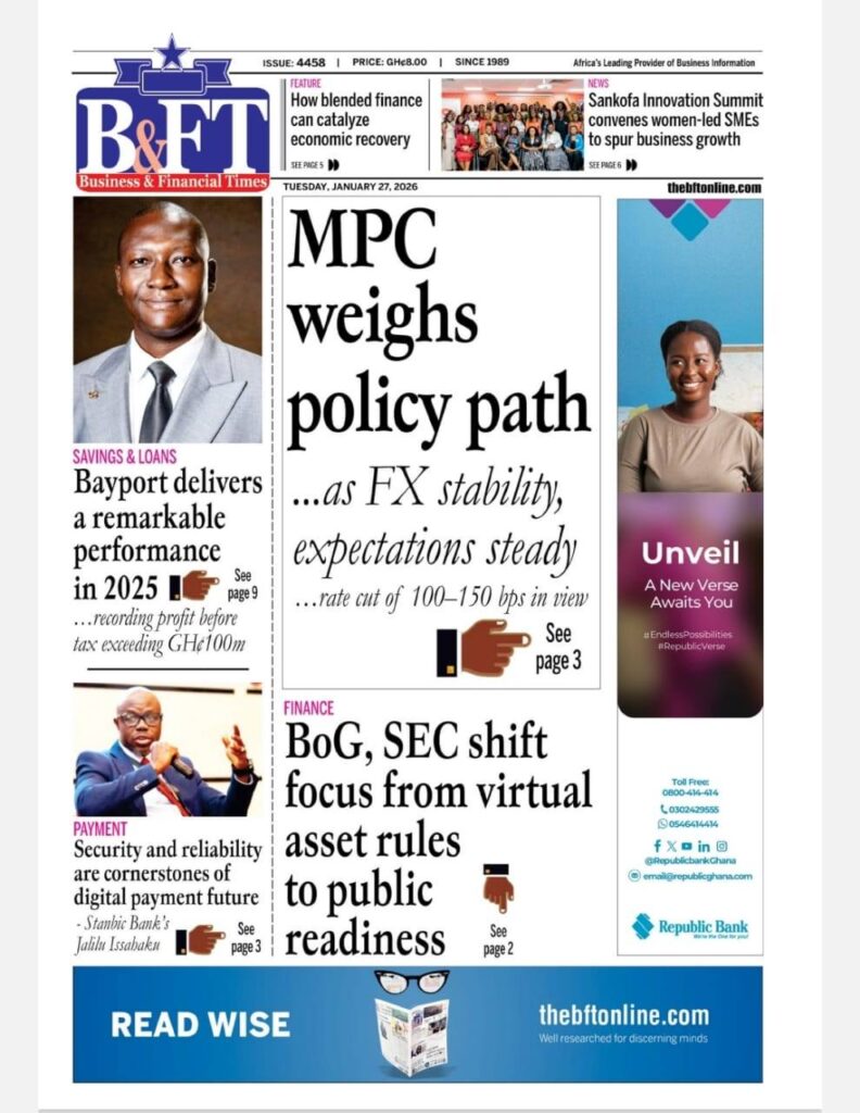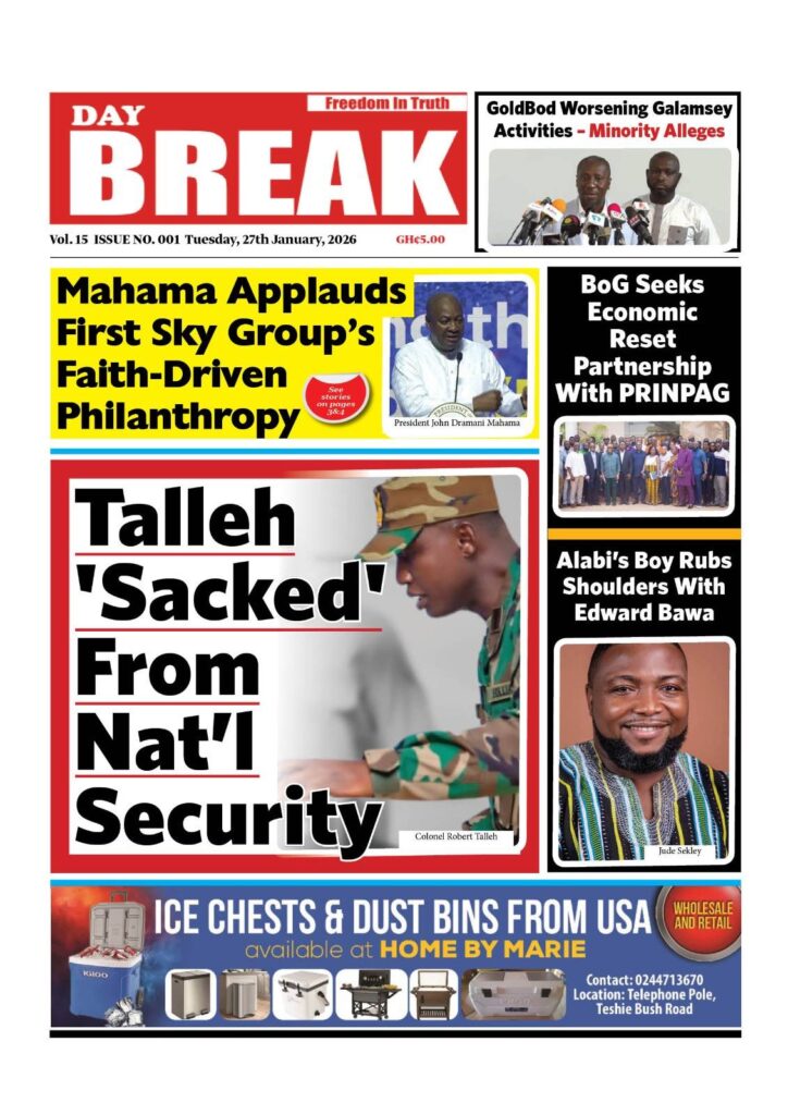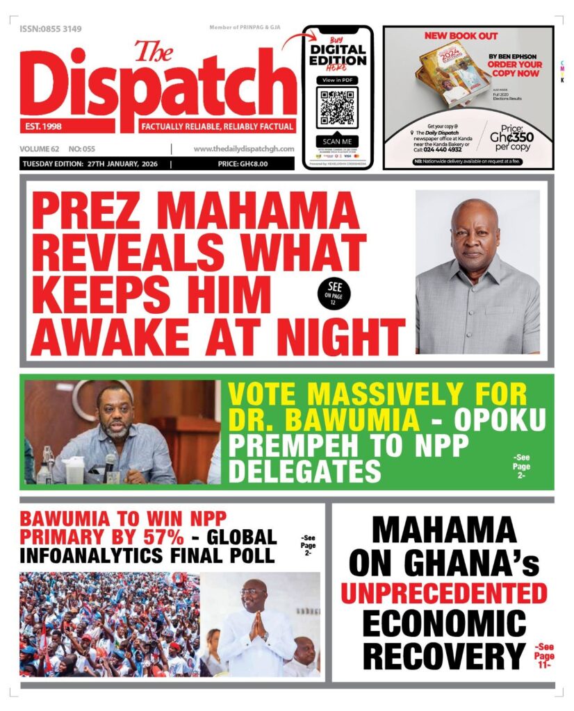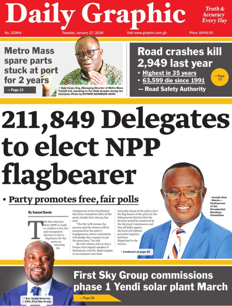 Home/General News/Newspaper Front Pages: Tuesday, January 27, 2026 General News Newspaper Front Pages: Tuesday, January 27, 2026 Eddie Kesse2 hours ago 37 Less than a minute Daily Graphic TagsFront Pages Newspaper Eddie Kesse2 hours ago 37 Less than a minute Share Facebook X WhatsApp Telegram