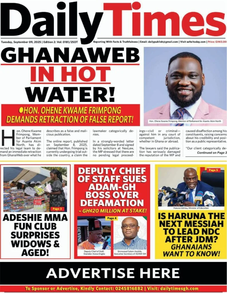 Newspaper Front Pages: Tuesday, September 09, 2025