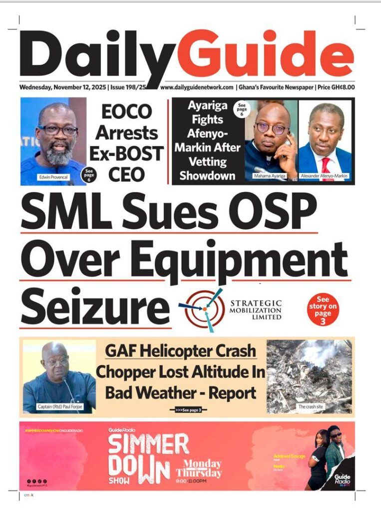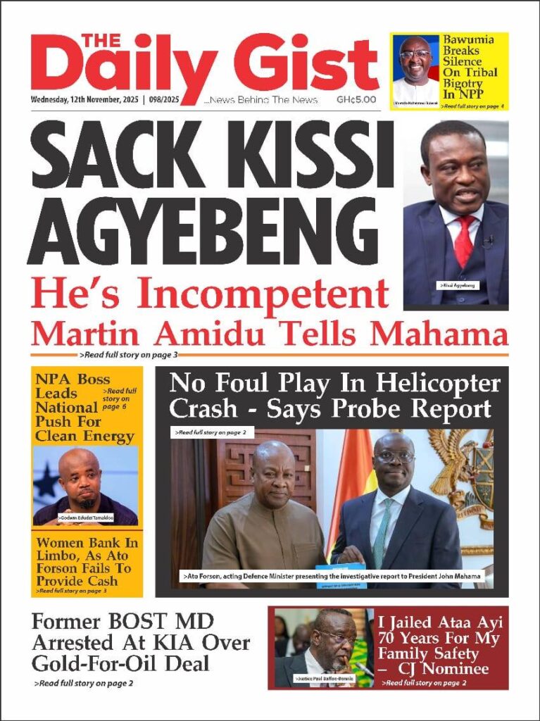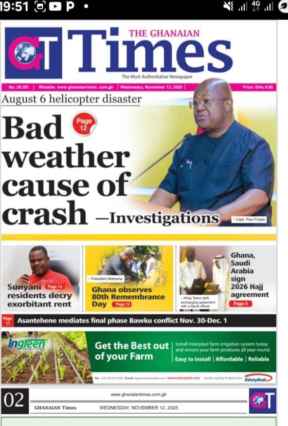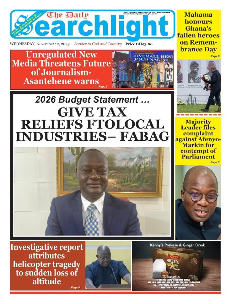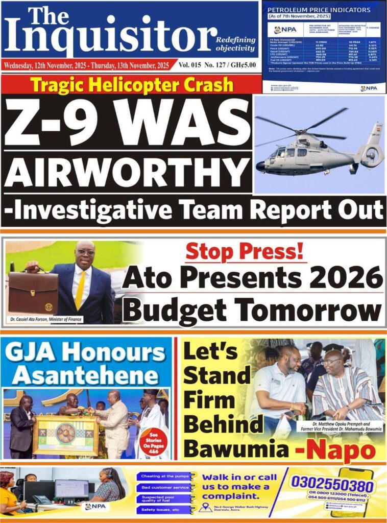 Home/General News/Newspaper Front Pages – Wednesday, 12th November, 2025 General News Newspaper Front Pages – Wednesday, 12th November, 2025 Eddie Kesse3 weeks ago 92 Less than a minute Daily Graphic TagsFront Pages Newspaper Eddie Kesse3 weeks ago 92 Less than a minute Share Facebook X WhatsApp Telegram