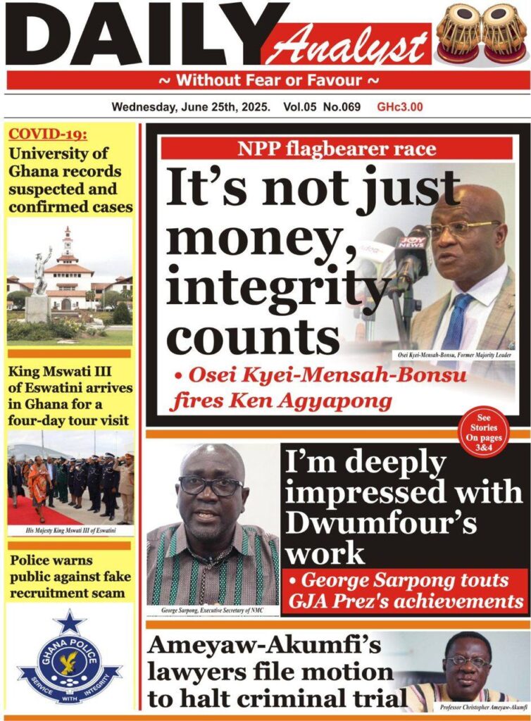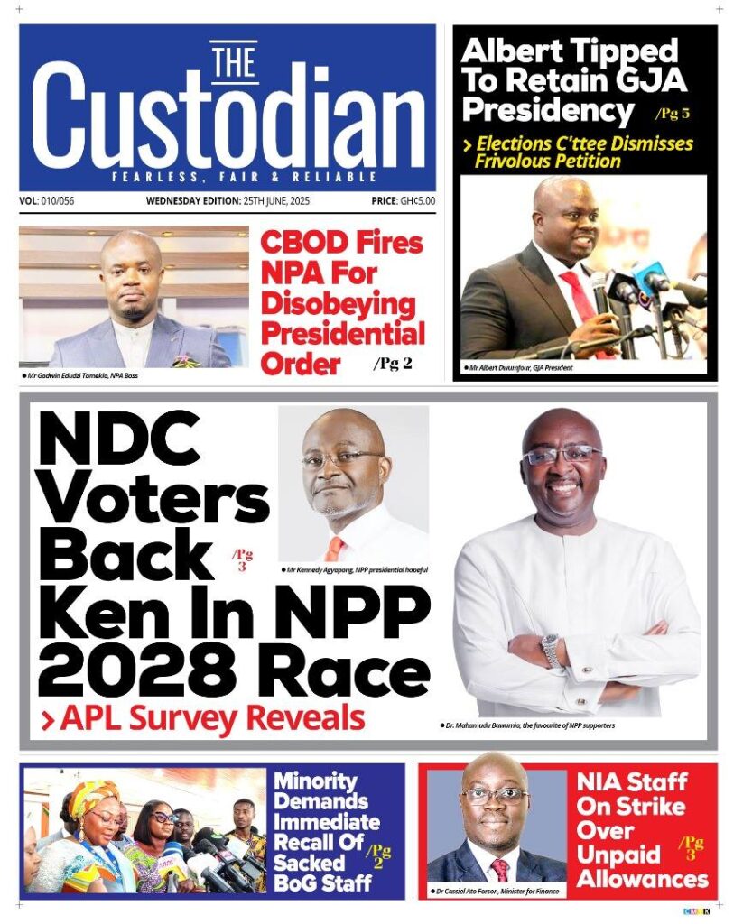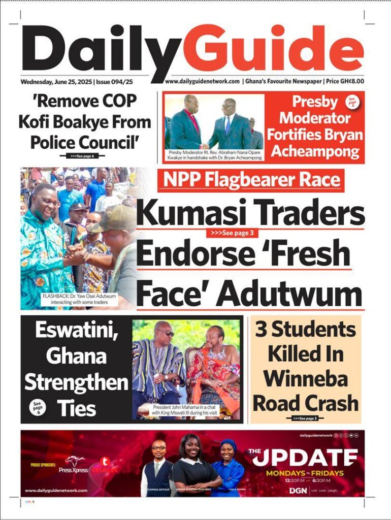 Home/General News/Newspaper Front Pages – Wednesday, 25th June, 2025 General News Newspaper Front Pages – Wednesday, 25th June, 2025 Eddie KesseJune 25, 2025 62 Less than a minute Daily Graphic The Chronicle Daily Guide The Custodian TagsFront Pages Newspaper Eddie KesseJune 25, 2025 62 Less than a minute Share Facebook X WhatsApp Telegram