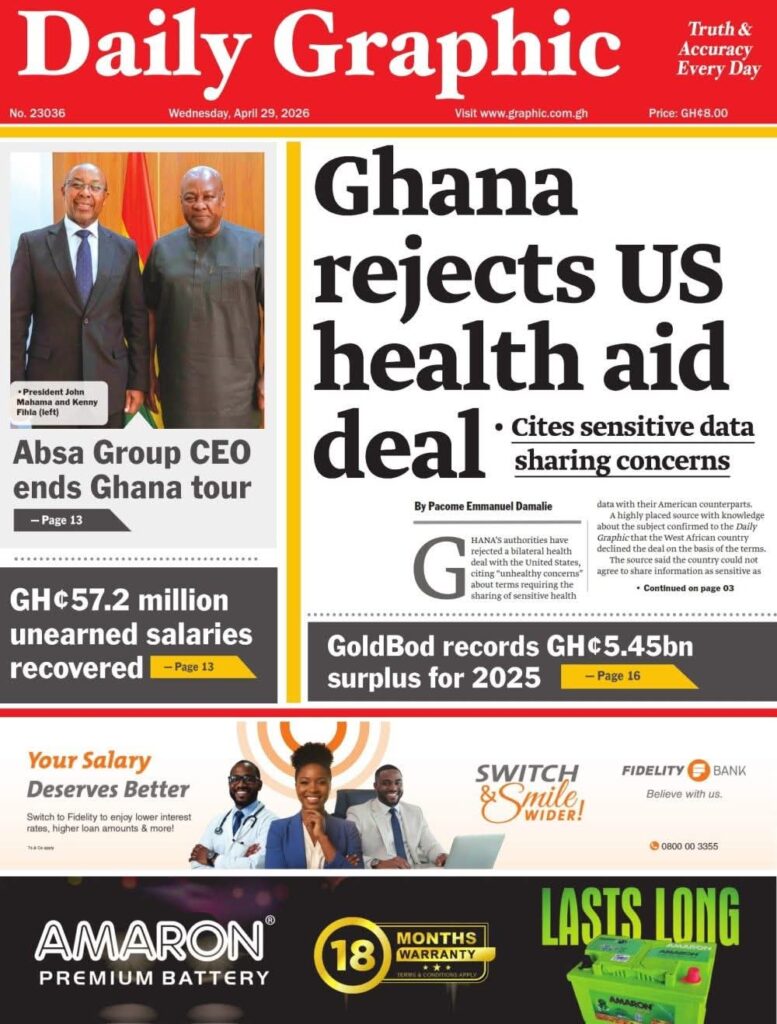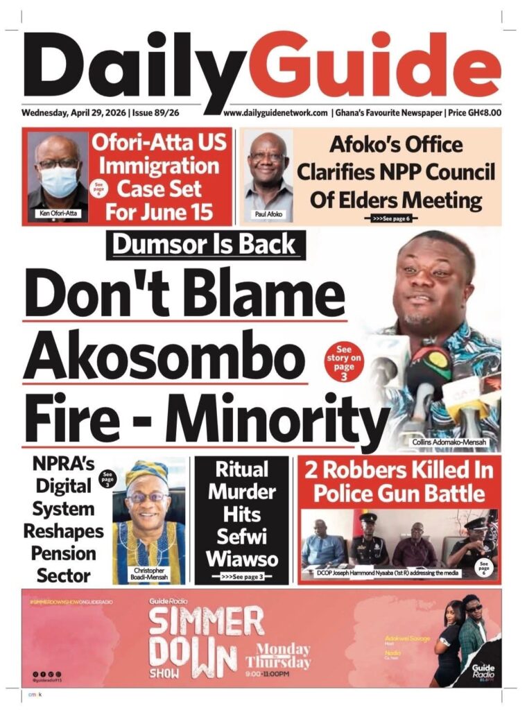 Home/General News/Newspaper Front Pages: Wednesday 29, April 2026 General News Newspaper Front Pages: Wednesday 29, April 2026 Eddie Kesse 1 hour ago 35 Less than a minute Daily Graphic TagsFront Pages Newspaper