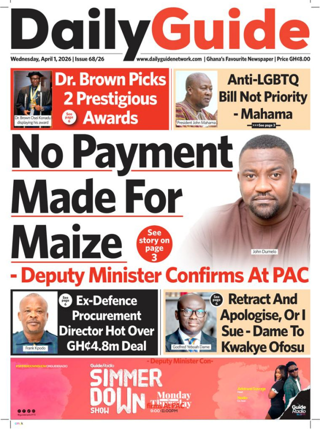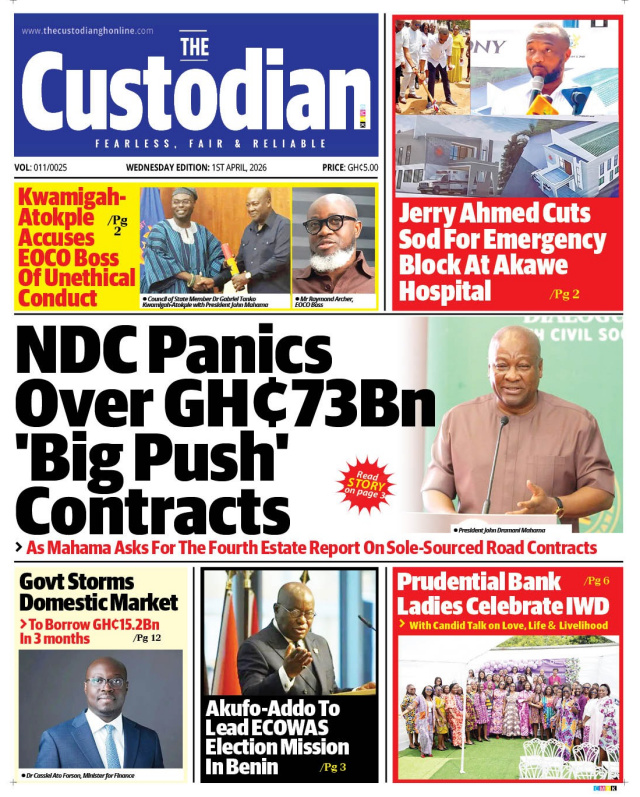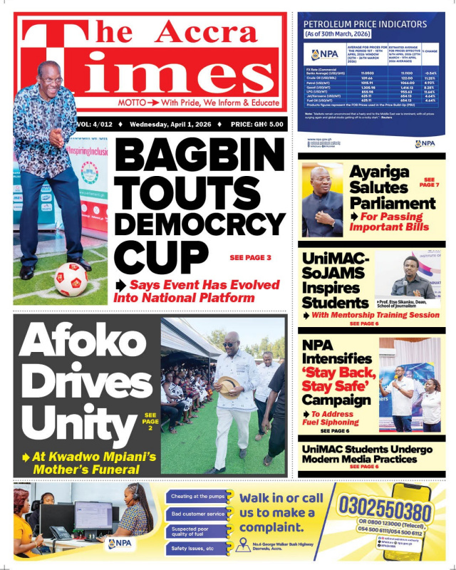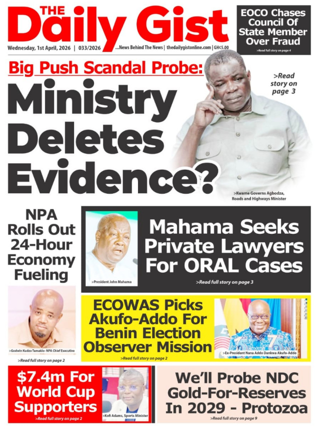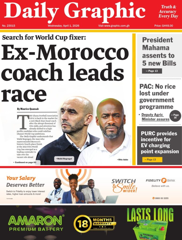 Home/General News/Newspaper Front Pages: Wednesday, April 01, 2026 General News Newspaper Front Pages: Wednesday, April 01, 2026 Eddie Kesse15 hours ago 57 Less than a minute Daily Graphic TagsFront Pages Newspaper Eddie Kesse15 hours ago 57 Less than a minute Share Facebook X WhatsApp Telegram