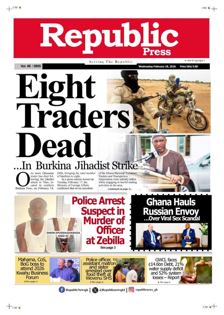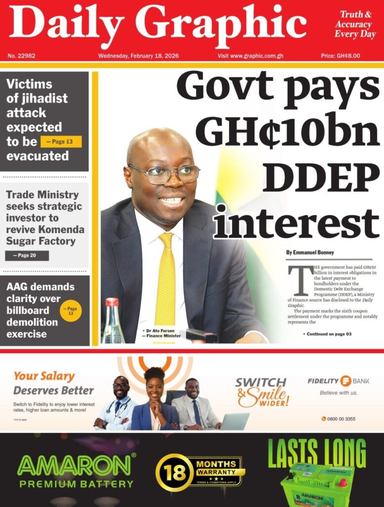 Home/General News/Newspaper Front Pages: Wednesday, February 18, 2026 General News Newspaper Front Pages: Wednesday, February 18, 2026 Eddie Kesse17 hours ago 56 Less than a minute Daily Graphic TagsFront Pages Newspaper Eddie Kesse17 hours ago 56 Less than a minute Share Facebook X WhatsApp Telegram
