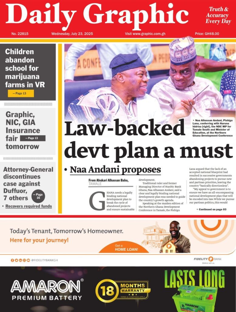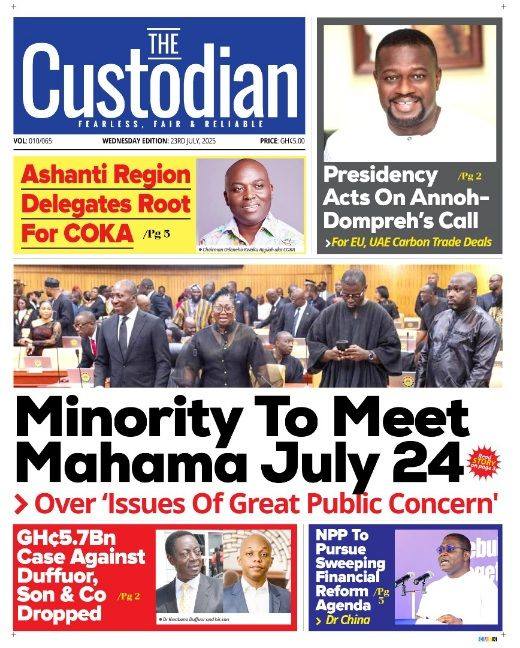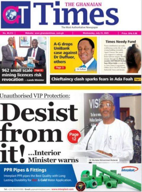 Home/General News/ Newspaper Front Pages: Wednesday, July 23, 2025 General News Newspaper Front Pages: Wednesday, July 23, 2025 Eddie KesseJuly 23, 2025 96 Less than a minute Daily Graphic The Chronicle Custodian The Ghanaian Times TagsFront Pages Newspaper Eddie KesseJuly 23, 2025 96 Less than a minute Share Facebook X WhatsApp Telegram