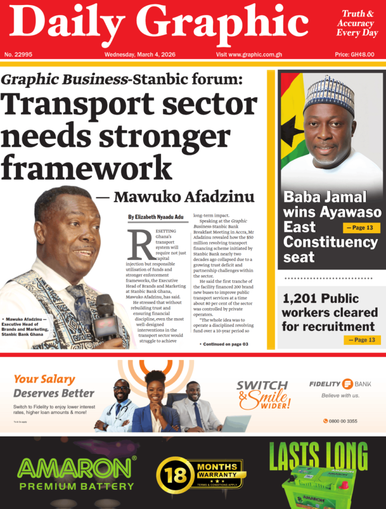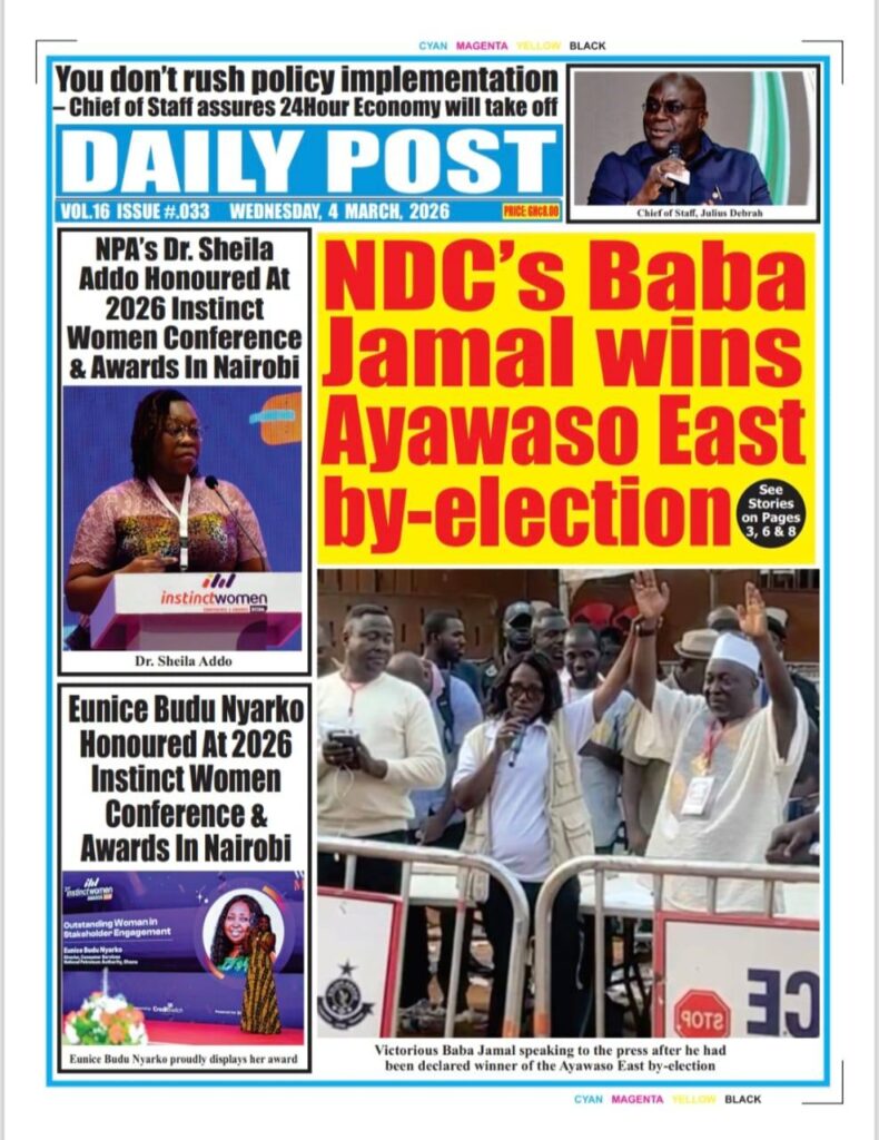 Home/General News/Newspaper Front Pages: Wednesday, March 04, 2026 General News Newspaper Front Pages: Wednesday, March 04, 2026 Eddie Kesse2 hours ago 53 Less than a minute Daily Graphic TagsFront Pages Newspaper Eddie Kesse2 hours ago 53 Less than a minute Share Facebook X WhatsApp Telegram