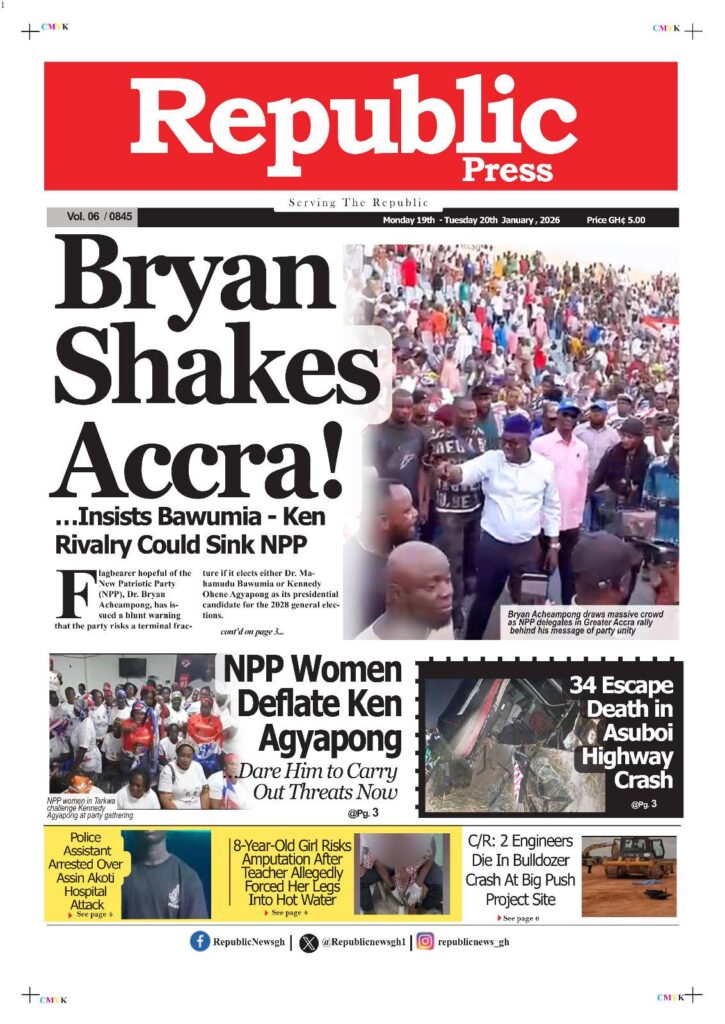 Home/General News/Newspaper Frontpages – Monday, 19th January, 2026 General News Newspaper Frontpages – Monday, 19th January, 2026 Eddie Kesse6 days ago 133 Less than a minute Daily Graphic TagsFront Pages Newspaper Eddie Kesse6 days ago 133 Less than a minute Share Facebook X WhatsApp Telegram