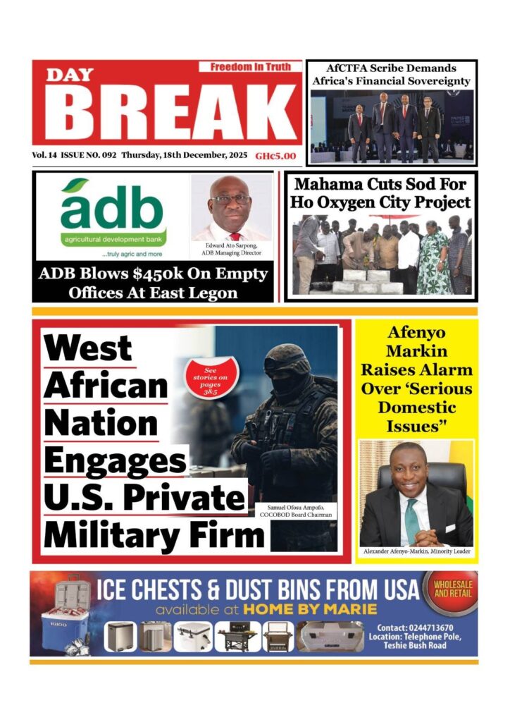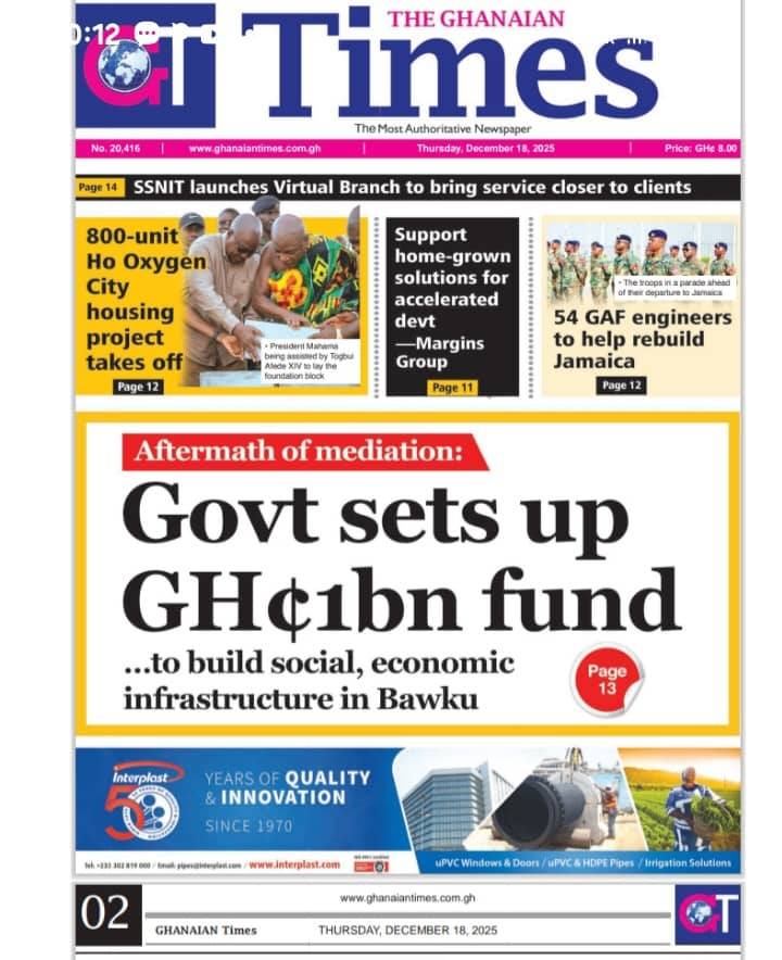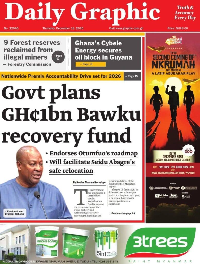 Home/General News/Newspaper Frontpages – Thursday, 18th December, 2025 General News Newspaper Frontpages – Thursday, 18th December, 2025 Eddie KesseDecember 18, 2025 85 Less than a minute Daily Graphic TagsFront Pages Newspaper Eddie KesseDecember 18, 2025 85 Less than a minute Share Facebook X WhatsApp Telegram