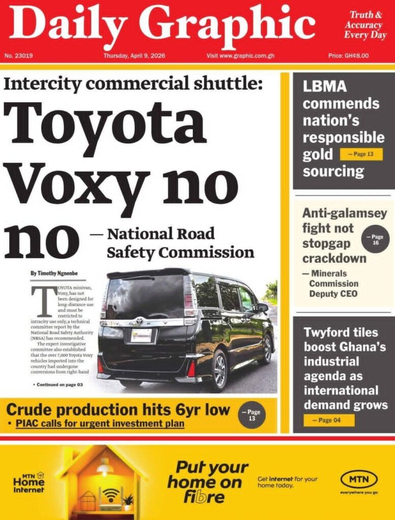 Home/General News/Newspaper Frontpages – Thursday, 9th April, 2026 General NewsUncategorized Newspaper Frontpages – Thursday, 9th April, 2026 Eddie Kesse 4 days ago 91 Less than a minute Daily Graphic