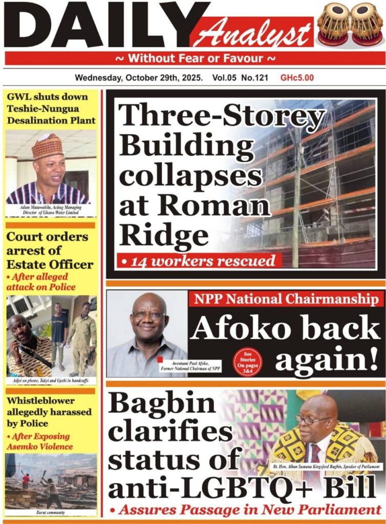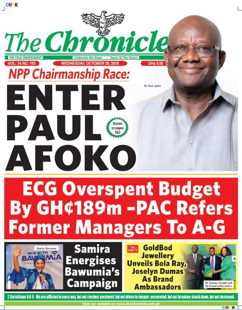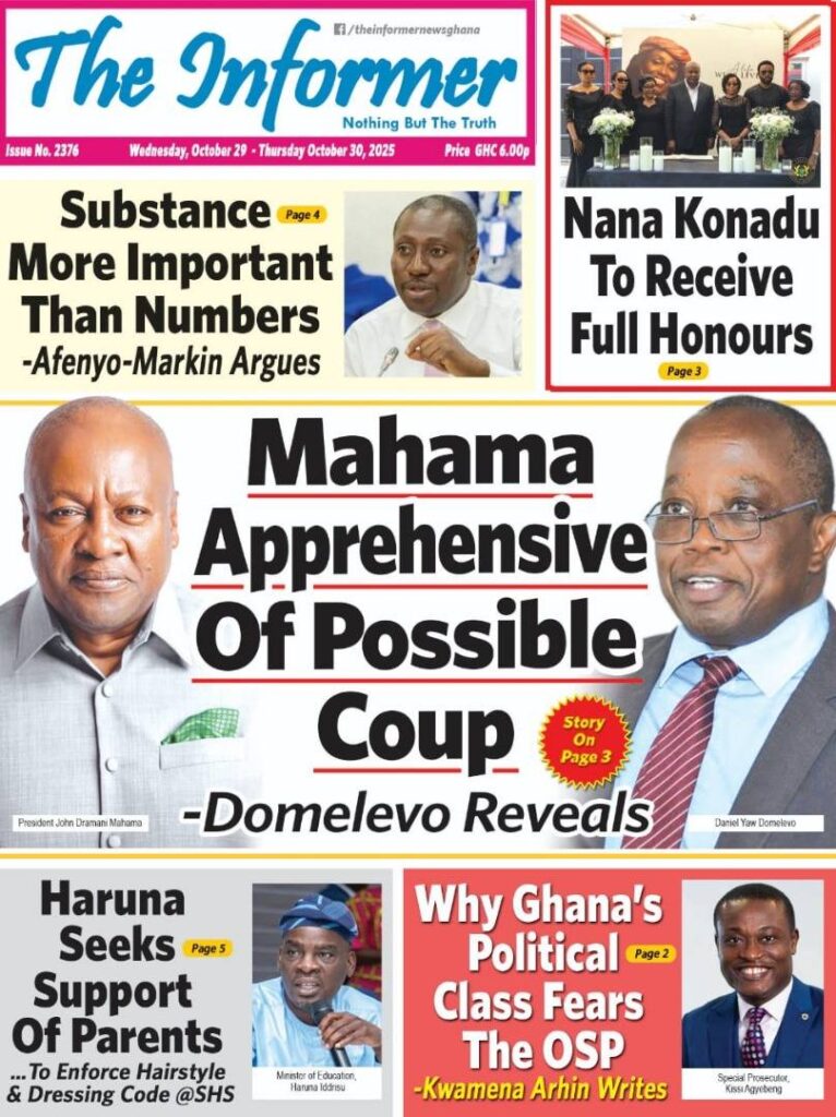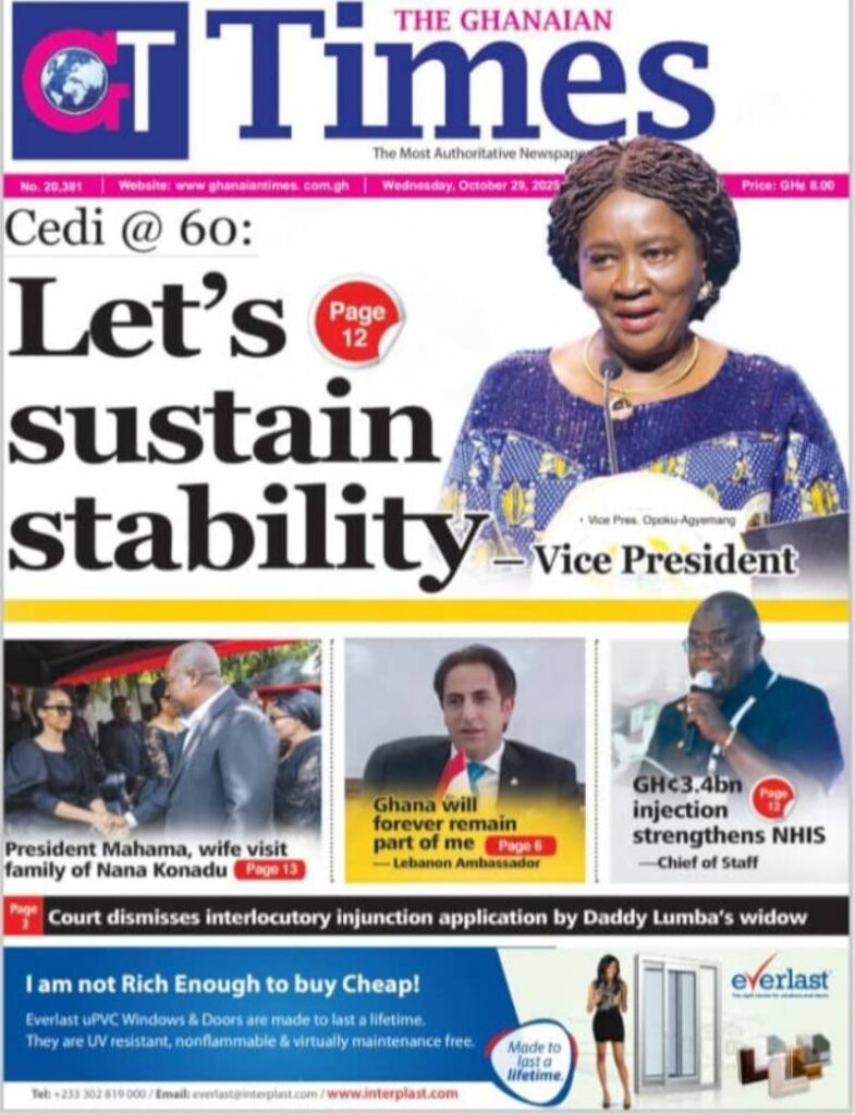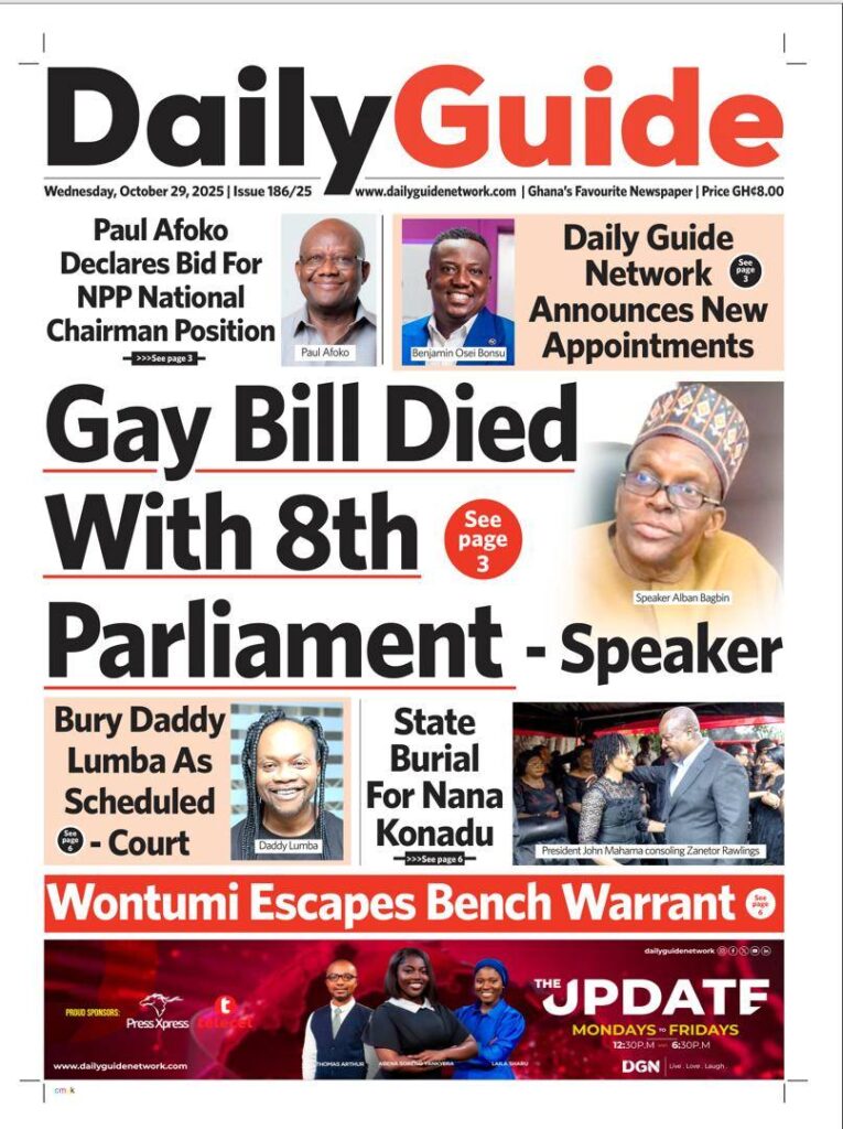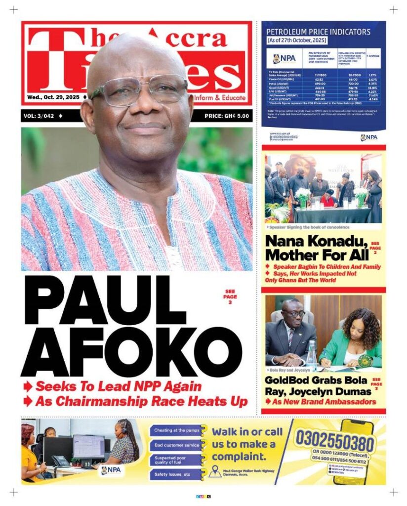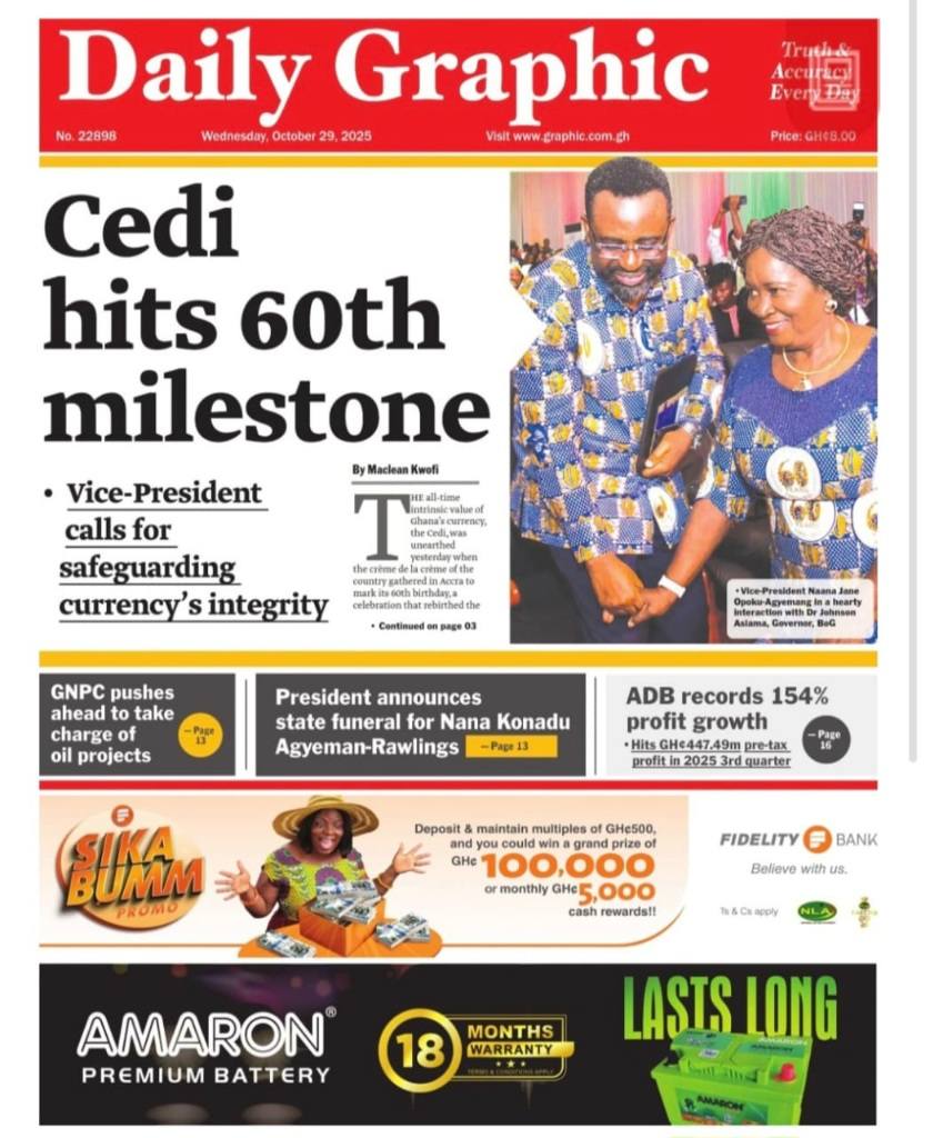 Home/General News/Newspaper Headlines: Wednesday, October 29, 2025 General News Newspaper Headlines: Wednesday, October 29, 2025 Eddie KesseOctober 29, 2025 164 Less than a minute Daily Graphic Eddie KesseOctober 29, 2025 164 Less than a minute Share Facebook X WhatsApp Telegram