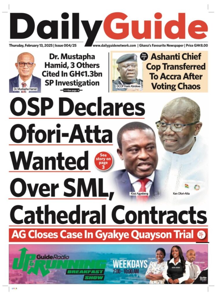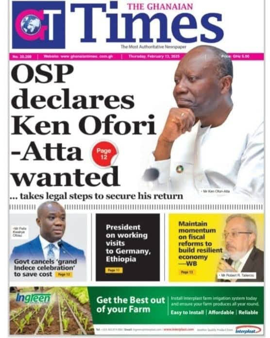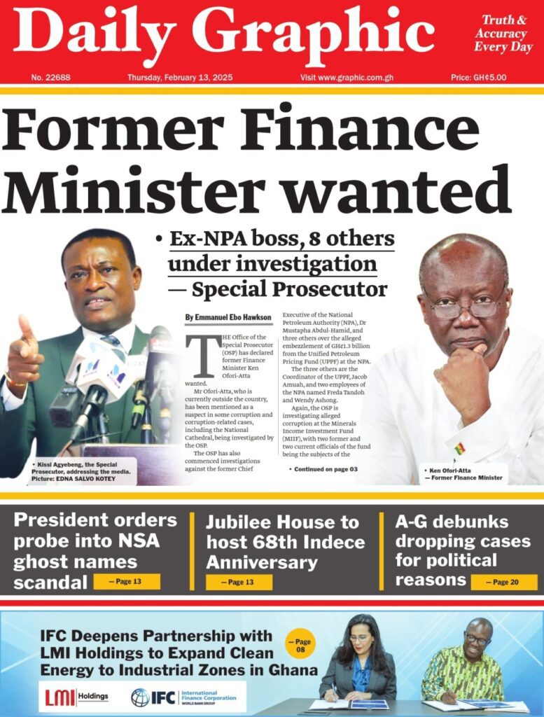 Home/General News/Newspaper Headlines: Thursday, February 13, 2025 General News Newspaper Headlines: Thursday, February 13, 2025 Eddie KesseFebruary 13, 2025 34 Less than a minute Daily Graphic Daily Guide TagsFront Pages Newspaper Newspaper Headlines Eddie KesseFebruary 13, 2025 34 Less than a minute Share Facebook X WhatsApp Telegram