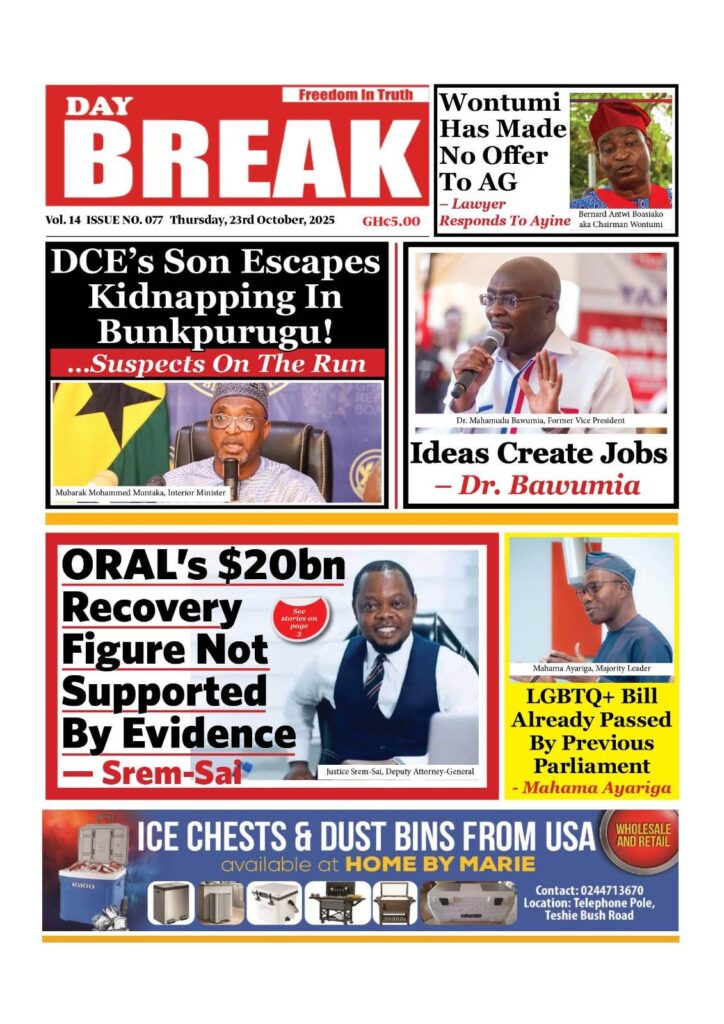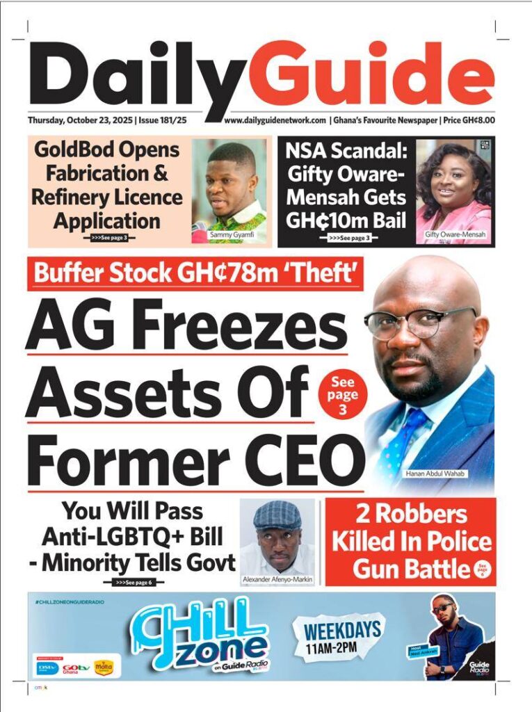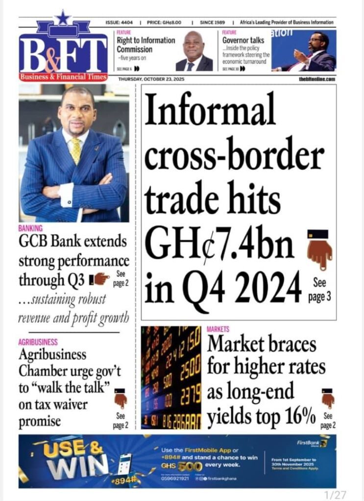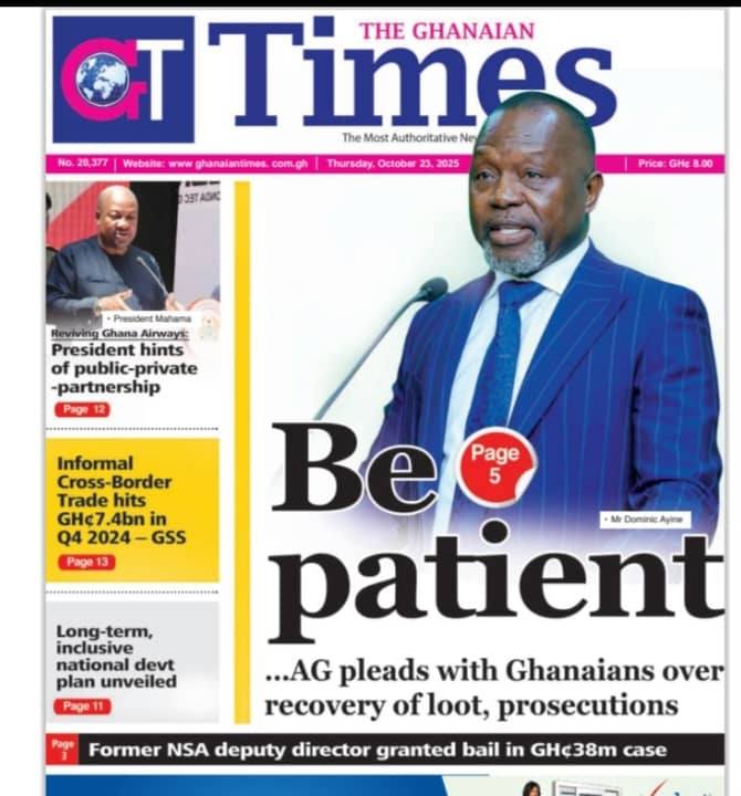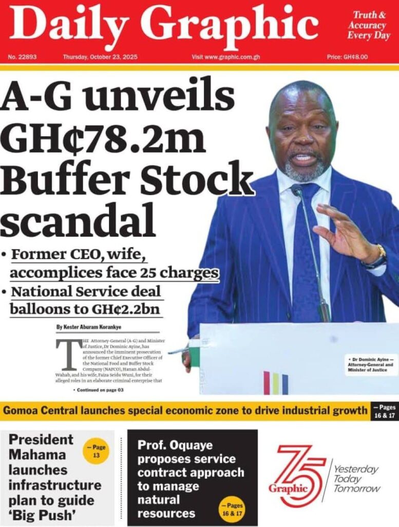 Home/General News/Thursday, October 23, 2025 Newspaper Headlines General News Thursday, October 23, 2025 Newspaper Headlines Eddie KesseOctober 23, 2025 161 Less than a minute Daily Graphic TagsFront Pages Newspaper Eddie KesseOctober 23, 2025 161 Less than a minute Share Facebook X WhatsApp Telegram