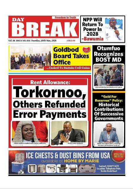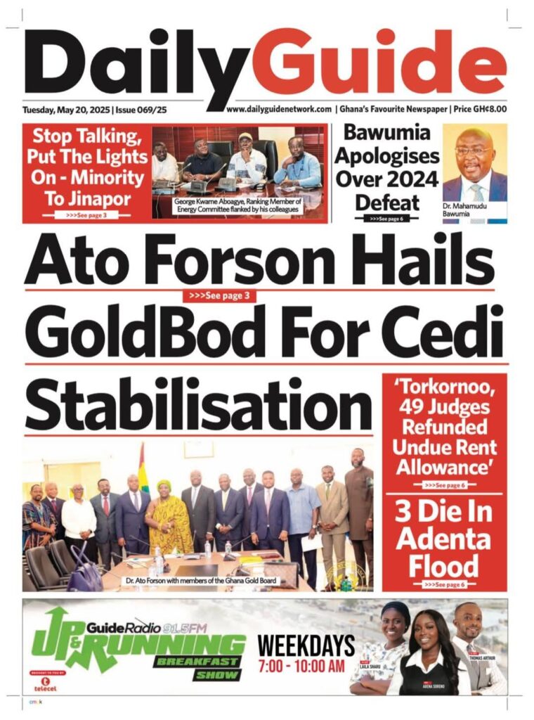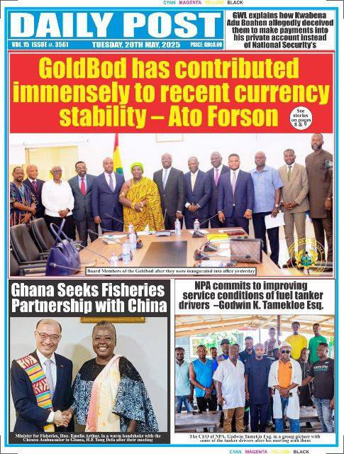 Home/General News/Newspaper Front Pages: Tuesday May 20 2025 General News Newspaper Front Pages: Tuesday May 20 2025 Eddie KesseMay 20, 2025 73 Less than a minute TagsFront Pages Newspaper Eddie KesseMay 20, 2025 73 Less than a minute Share Facebook X WhatsApp Telegram